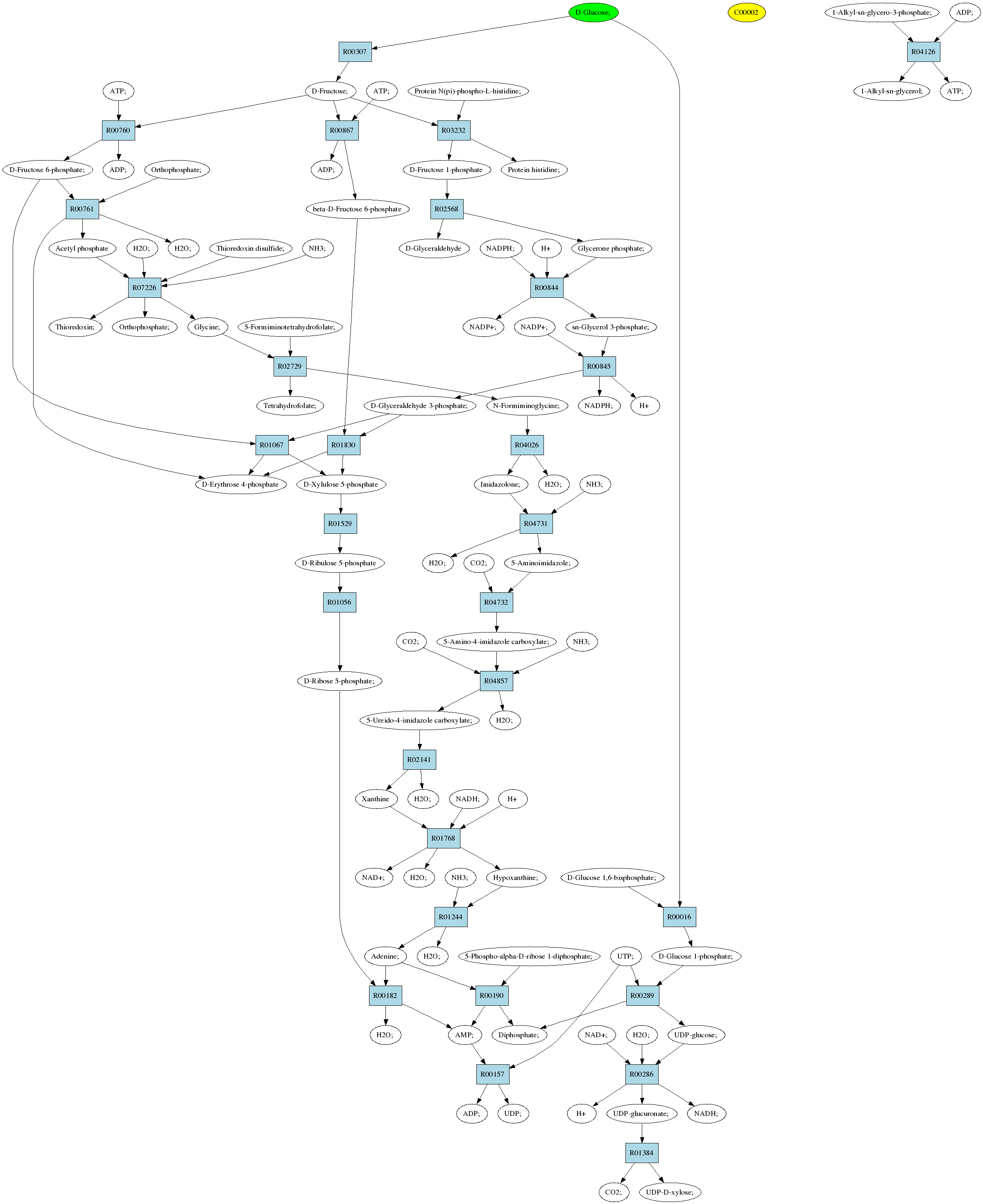 | RP01994 | R02141 | 0 | Xanthine + H2O; <=> 5-Ureido-4-imidazole carboxylate; |