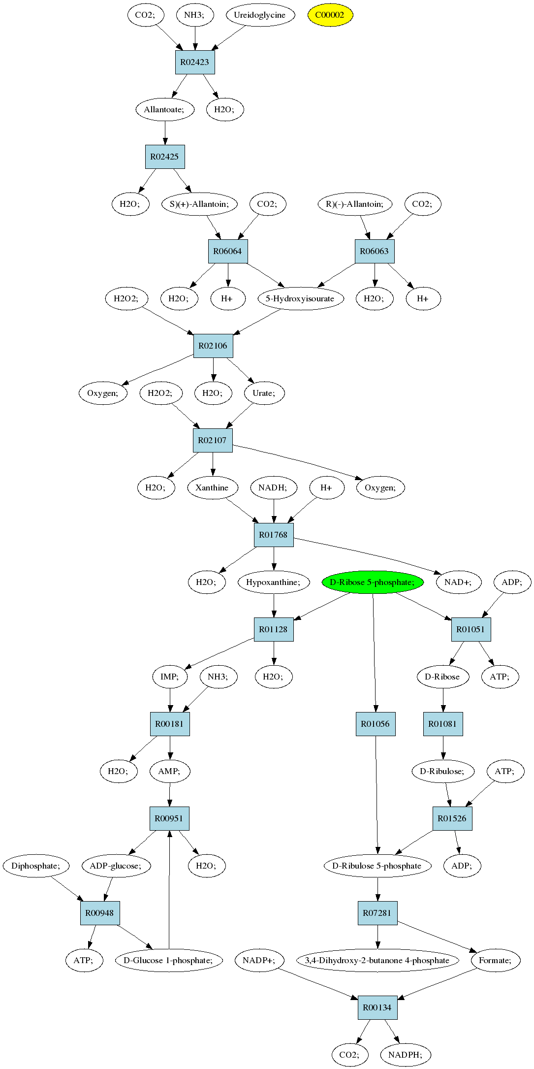 | RP02201 | R02425 | 0 | S)(+)-Allantoin; + H2O; <=> Allantoate; |