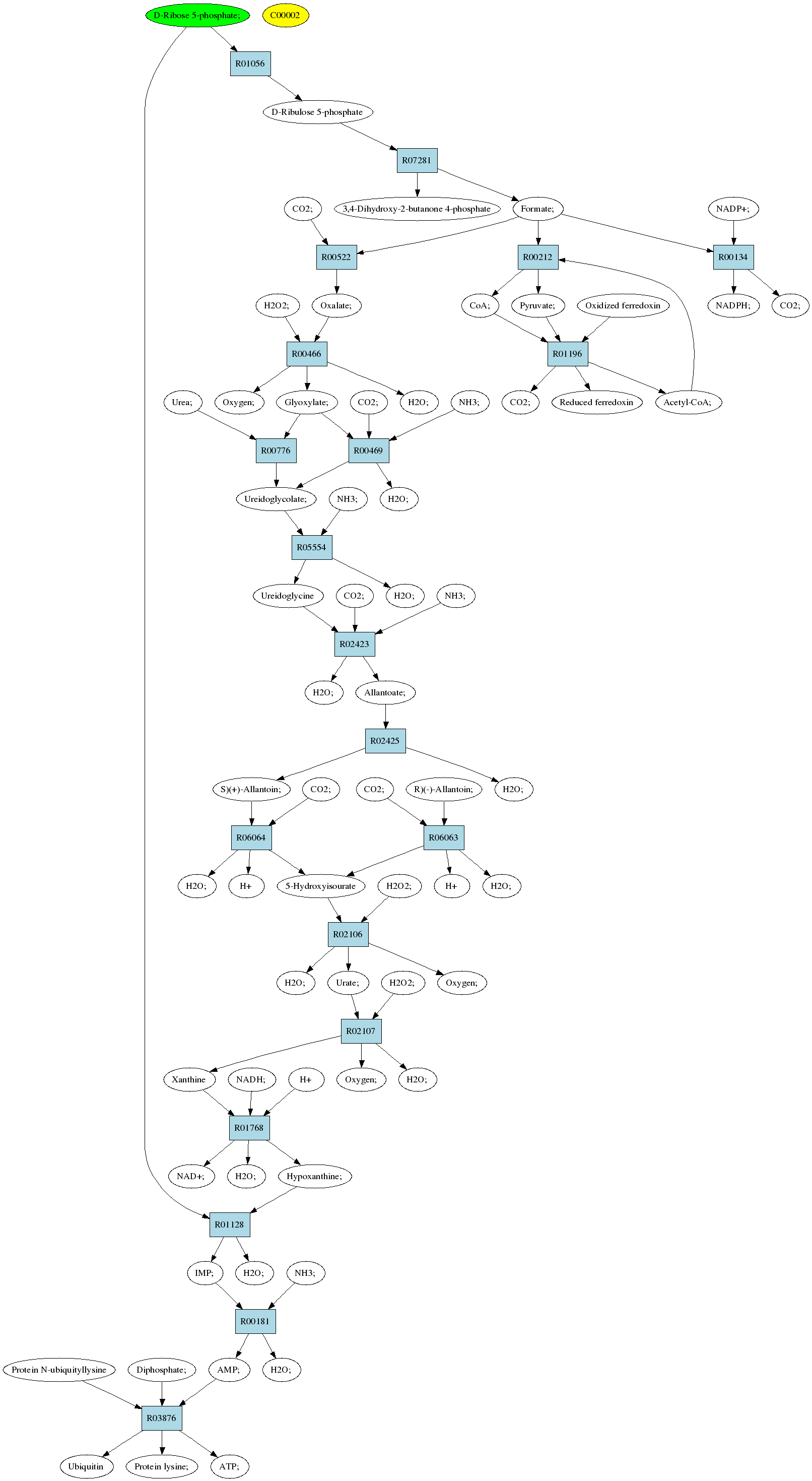 | RP02201 | R02425 | 0 | S)(+)-Allantoin; + H2O; <=> Allantoate; |