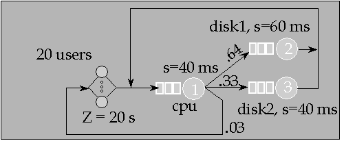 - With MVA, find system throughput, response time and average queue lengths at each device with mpl=0, 1, 2, 3, and 4.