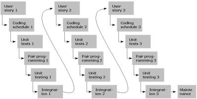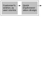 Project models that are based on incremental development, such as the evolutionary model (Figure 2.2) and the Extreme Programming (XP) model [Beck00] (Figure 2.3), have tried to solve the problem of late corrections by implementing the software in stages, piece by piece. At the beginning, the project group designs and codes only a small part of the features, which are then tested. Then more features are designed, coded and tested, until the whole system is ready. The requirements gradually become evident as the system is implemented and the client begins to see what the system will be like and how it will work; "I can't tell you what I want, but I'll know when I see it" [Boehm88, p. 63].