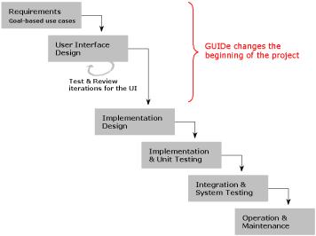 Instead of accepting the problems caused by deficient requirement specifications and the changes demanded by the client, the GUIDe model tries to solve these problems. In the GUIDe model, a user interface design phase is scheduled at the beginning of a project. During this phase, required functionality and interaction are derived from goal-based use cases, which are discovered through field studies. With the help of the resulting user interface specification, we can test already before designing implementation solutions whether the specified system will support the users' goals: