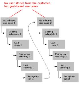 When the projects moves on to testing and implementation cycles according to the XP model, the system is implemented one use case or partial use case at a time. The main rule is that functionalities for use cases with the highest priority are implemented first so that it will be possible to perform useful goals or parts of them with the system at an early stage.