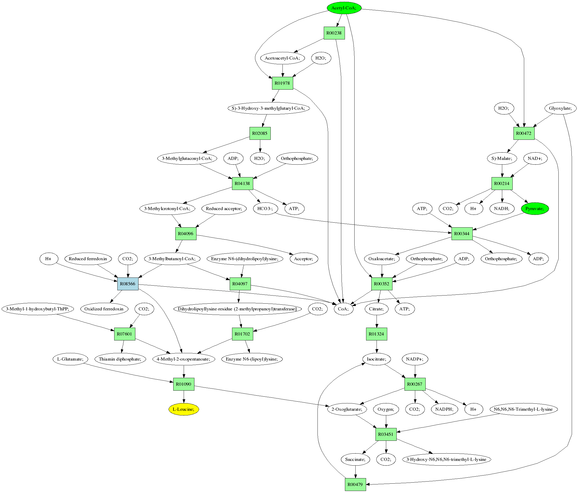 | RP01666 | R08566 | 41 | TRIRE0081576 | O58413|VORA_PYRHO | 0.011 | 1.2.7.7 | CoA; + 4-Methyl-2-oxopentanoate; + Oxidized ferredoxin <=> 3-Methylbutanoyl-CoA; + CO2; + H+ + Reduced ferredoxin |
