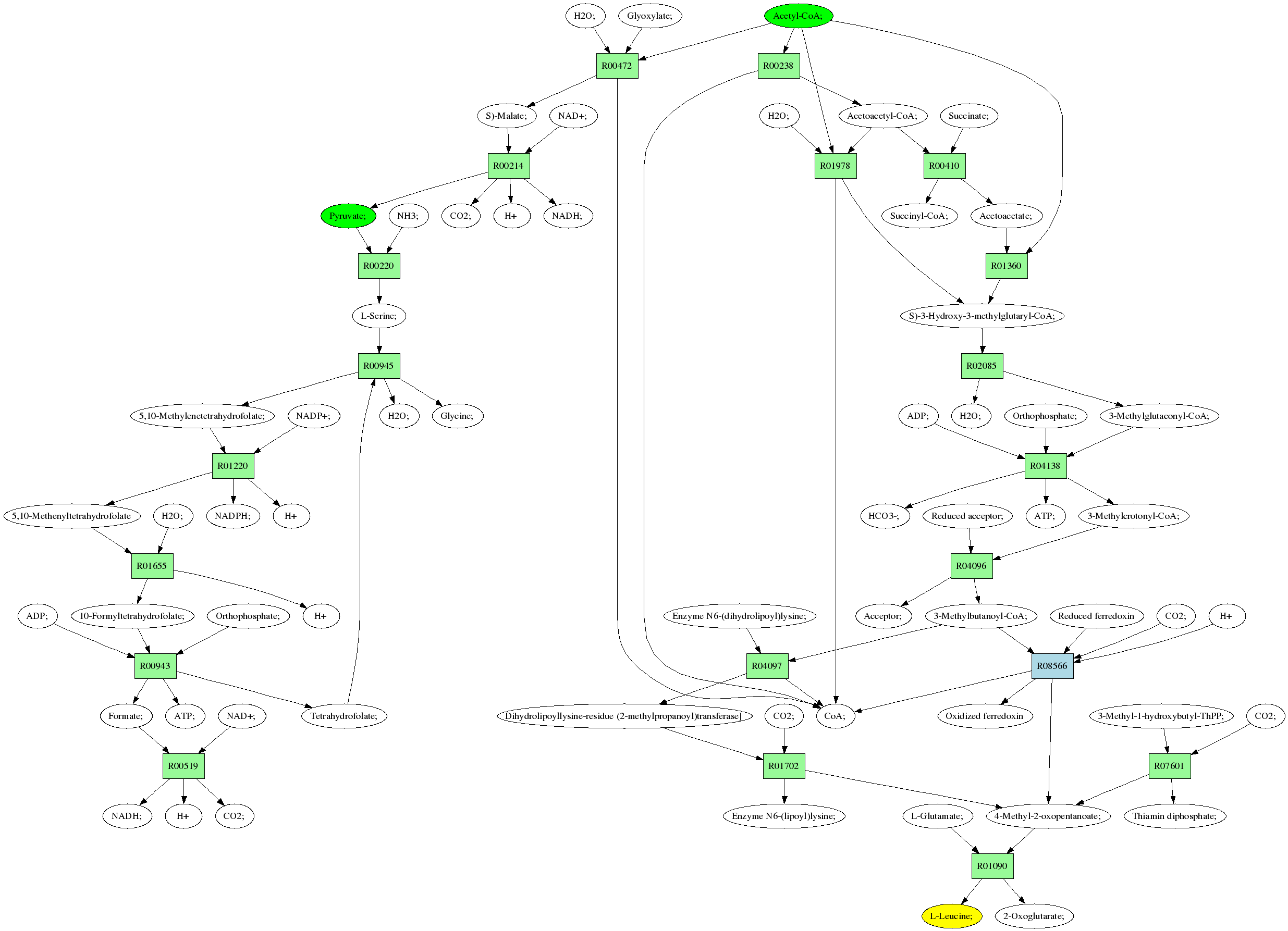 | RP00424 | R01090 | 480 | TRIRE0045459 | P47176|BCA2_YEAST | e-135 | 2.6.1.42 | 2-Oxoglutarate; + L-Leucine; <=> L-Glutamate; + 4-Methyl-2-oxopentanoate; |