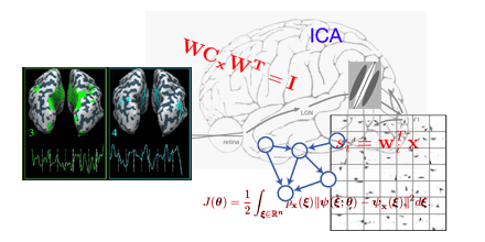 In our project on brain imaging data analysis we concentrated on developing advanced methods for separating sources in brain activity. Different variants of independent component analysis have been developed. In brain imaging, the data is rather different from a basic ICA setting in the sense that we have data from several subjects. Combining information from many subjects is challenging but it is also useful because it allows for an assessement of the reliability of the components.