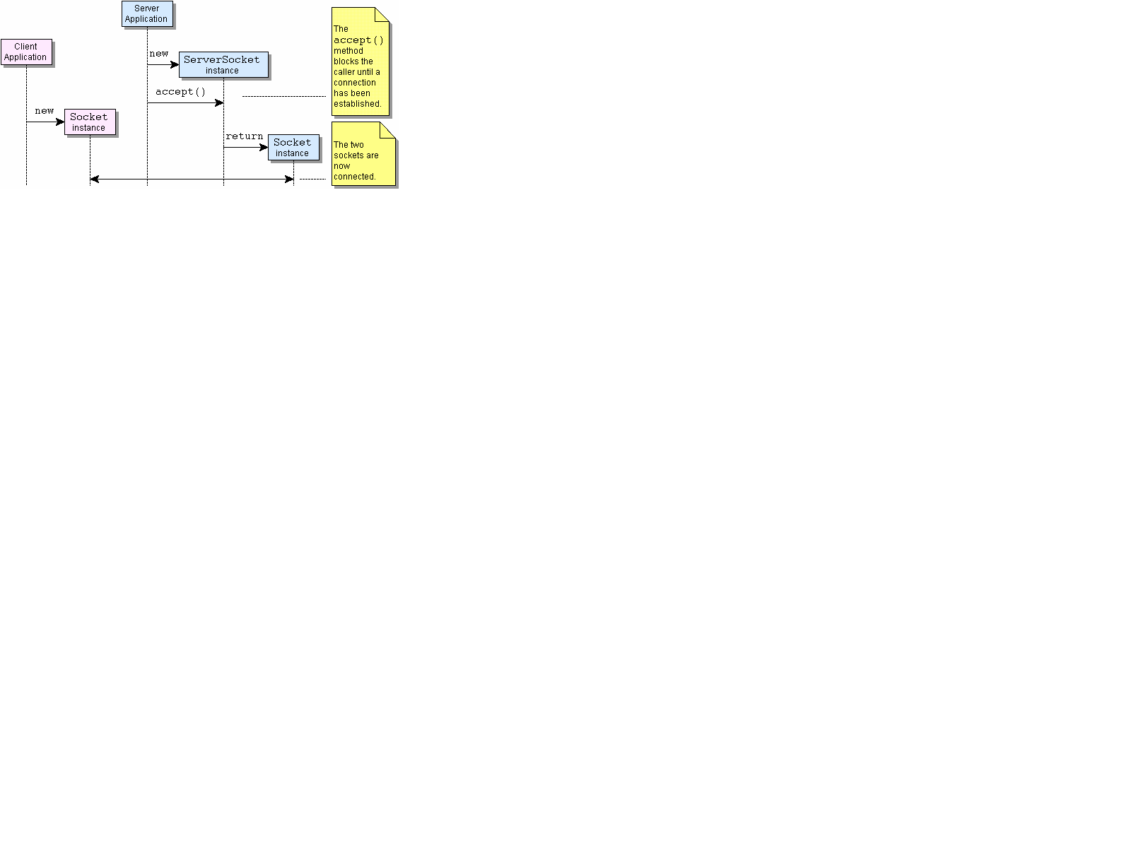 ServerSocket. The client also creates a