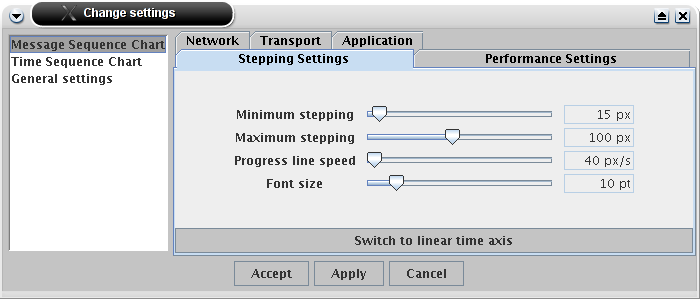 For example, some PEF files may contain protocol units that are sent and received within a couple of milliseconds (as is the case in a local area network) and in other files it might take the units several hundred milliseconds to arrive (modem connection to the internet, for example). Specifically in the MSC view if the linear time scale mode is used it's often necessary to adjust the visual scale -setting of the Animator to make the information on the units readable.