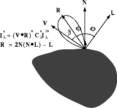 jossa spekulaari termi on suurimmillaan kun peiliheijastussuunta ja katseluvektori yhtyvät.