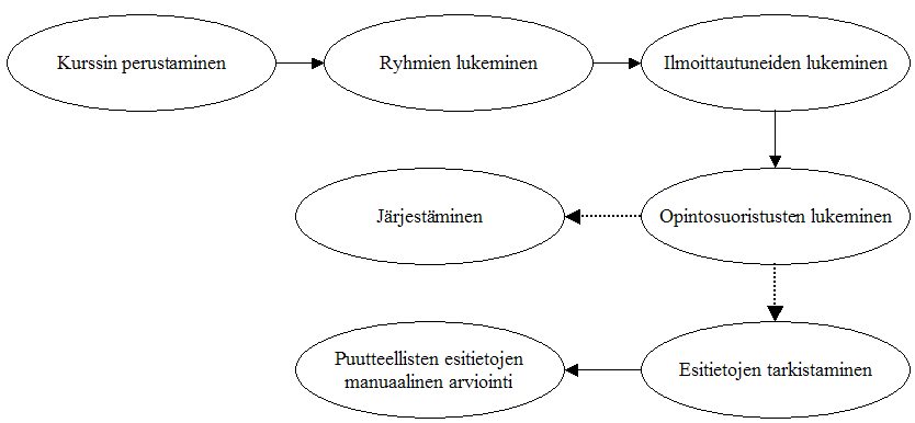 Käyttäjän ladatessa valikosta toisen lukukauden kurssin tiedot kaikki viittaukset edelliseen kurssiin poistetaan järjestelmän tietorakenteista ilman järjestelmän uudelleenkäynnistystä.