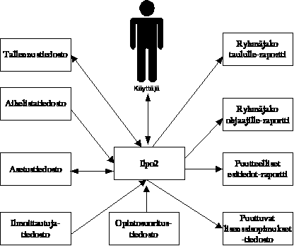 TKTL:n Ohjelmistotuotantoprojekti-kurssin vastuuhenkilöllä, Jannella, on luotavana syksyn 2006 kurssin ryhmät. Ilmoittautuneita opiskelijoita on 29 kpl ja aiheita on 6kpl. Jannen tavoitteena on jakaa kurssille ilmoittautuneet opiskelijat ryhmiin. Opiskelijat ovat ilmoittautuessaan täyttäneet kurssiin liittyvän kyselylomakkeen. Jannella on lisäksi koneellaan tiedostoina aihelista, ilmoittautuneiden opiskelijoiden lista ja ilmoittautuneiden opiskelijoiden kurssisuoritukset. Jannella on käytössään viime kesän ohjelmistotuotantoprojektin tekemä Ilpo2 - ohjelma ja siihen liittyvät dokumentit.