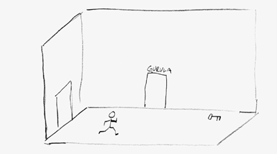 - juttelee ihmisille, saa vinkkejä, kerää tavaraa, etenee