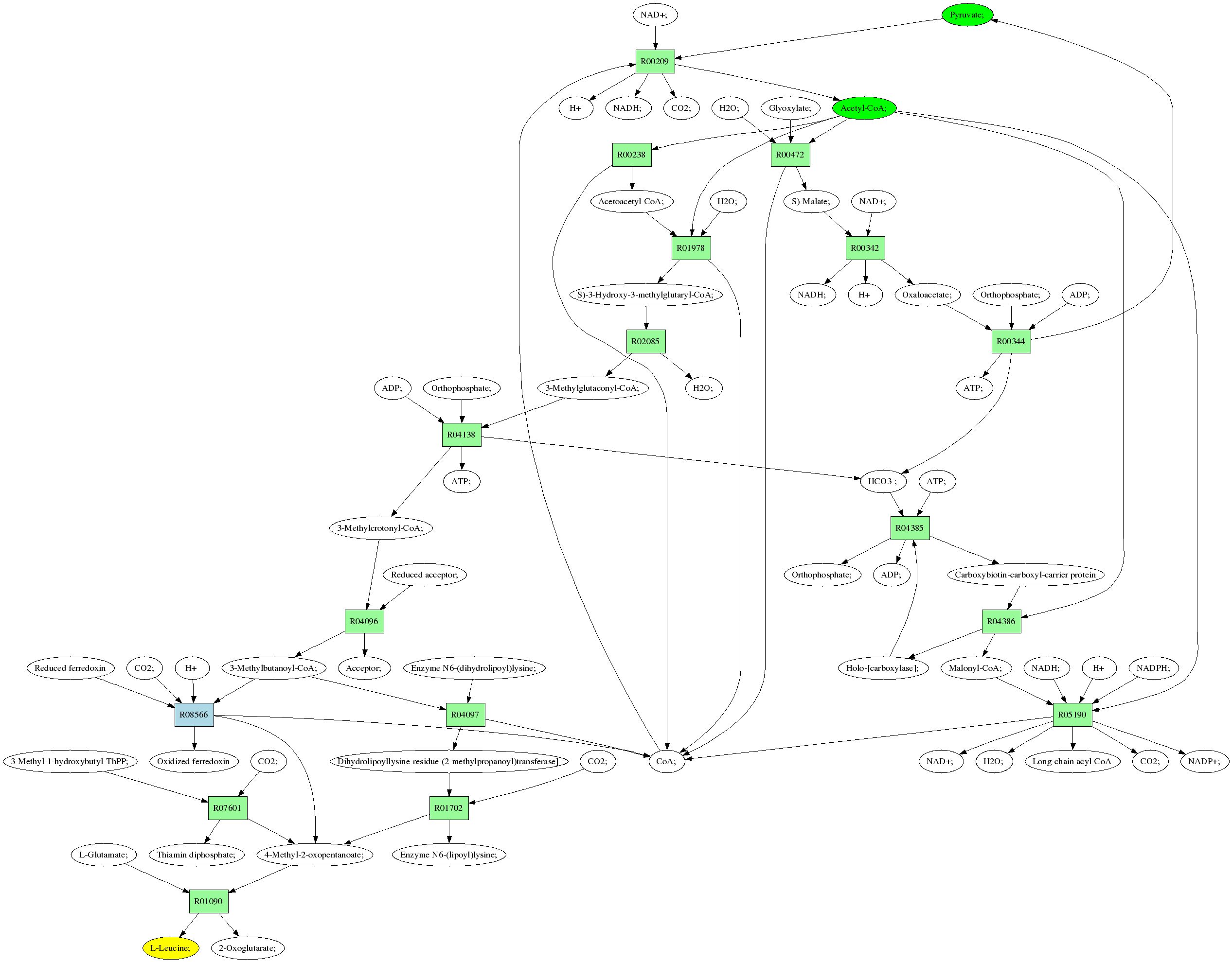 | RP01666 | R08566 | 41 | TRIRE0081576 | O58413|VORA_PYRHO | 0.011 | 1.2.7.7 | CoA; + 4-Methyl-2-oxopentanoate; + Oxidized ferredoxin <=> 3-Methylbutanoyl-CoA; + CO2; + H+ + Reduced ferredoxin |