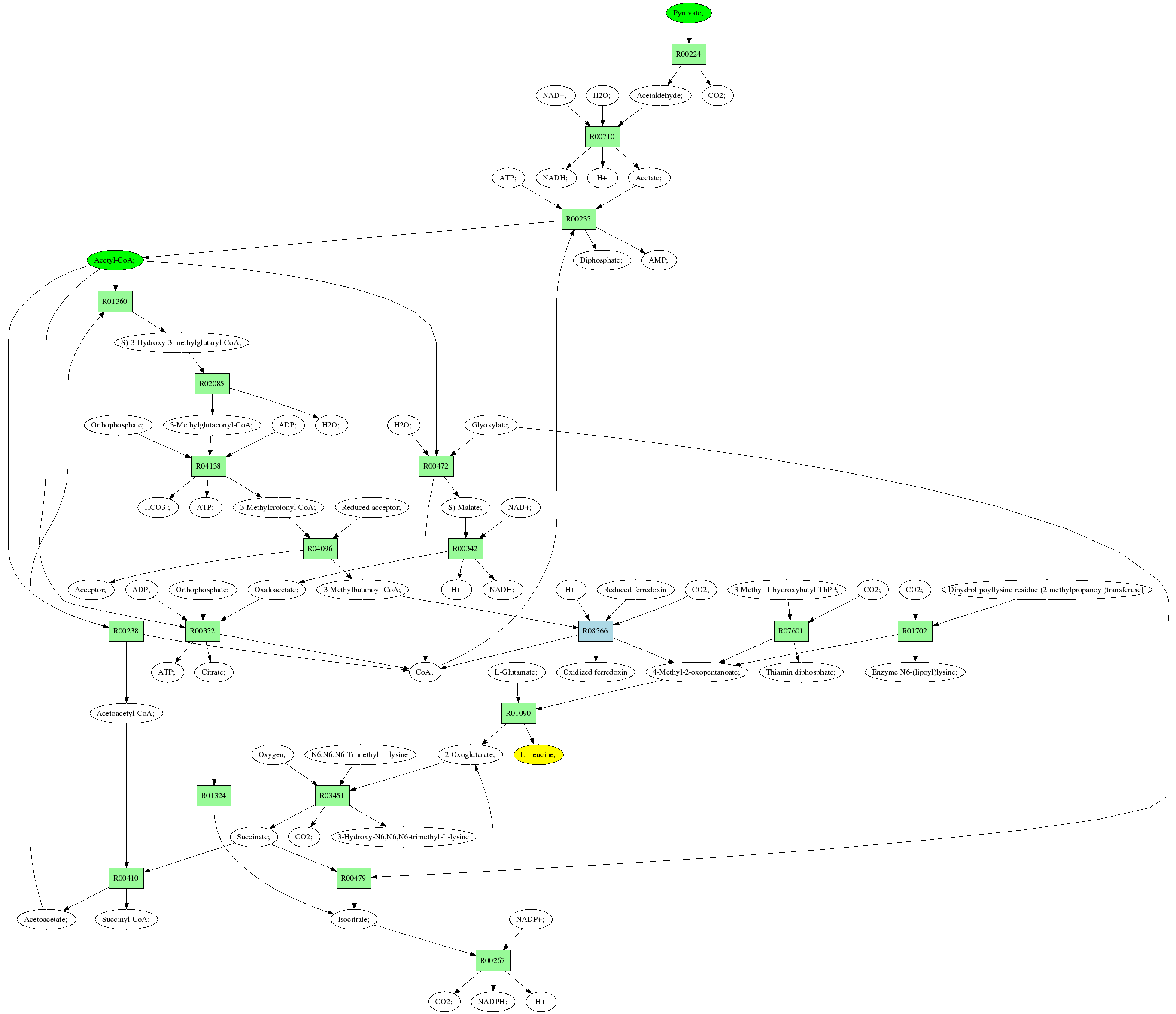 | RP00424 | R01090 | 480 | TRIRE0045459 | P47176|BCA2_YEAST | e-135 | 2.6.1.42 | 2-Oxoglutarate; + L-Leucine; <=> L-Glutamate; + 4-Methyl-2-oxopentanoate; |