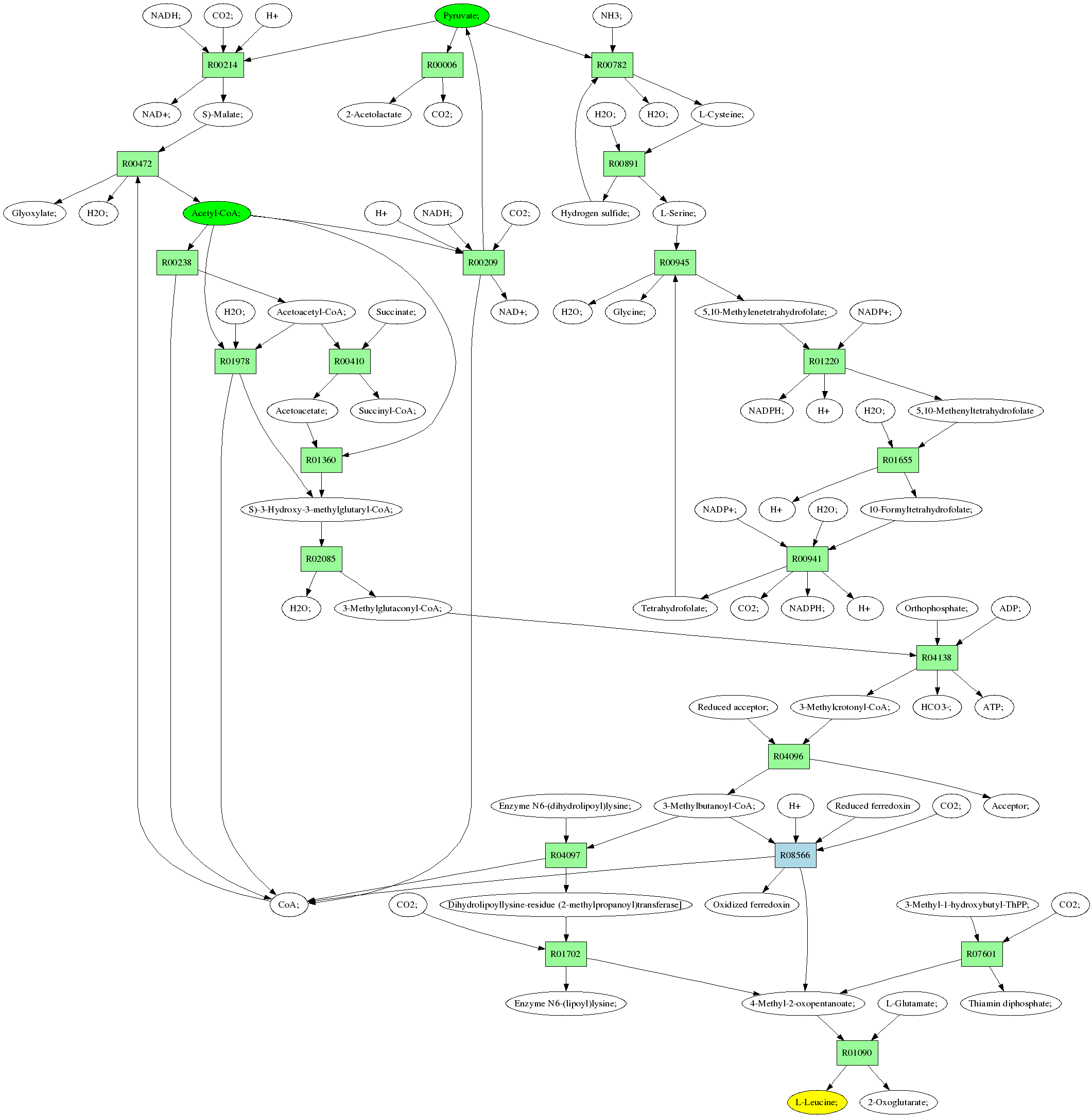 | RP01666 | R08566 | 41 | TRIRE0081576 | O58413|VORA_PYRHO | 0.011 | 1.2.7.7 | CoA; + 4-Methyl-2-oxopentanoate; + Oxidized ferredoxin <=> 3-Methylbutanoyl-CoA; + CO2; + H+ + Reduced ferredoxin |