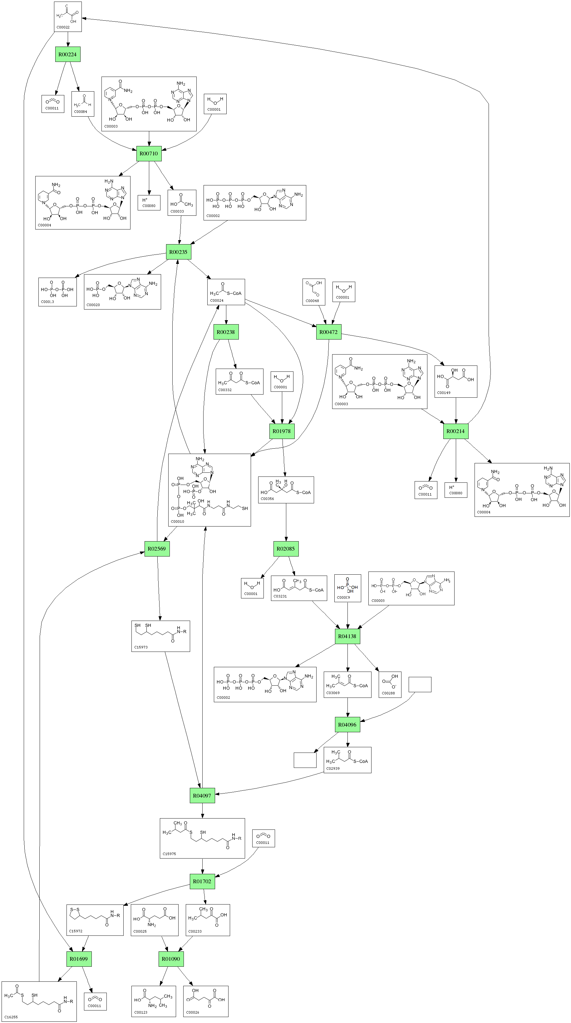| RP10741 | R02569 | 543 | TRIRE0044038 | P20285|ODP2_NEUCR | e-154 | 2.3.1.12 | Acetyl-CoA; + Enzyme N6-(dihydrolipoyl)lysine; <=> CoA; + Dihydrolipoyllysine-residue acetyltransferase] |