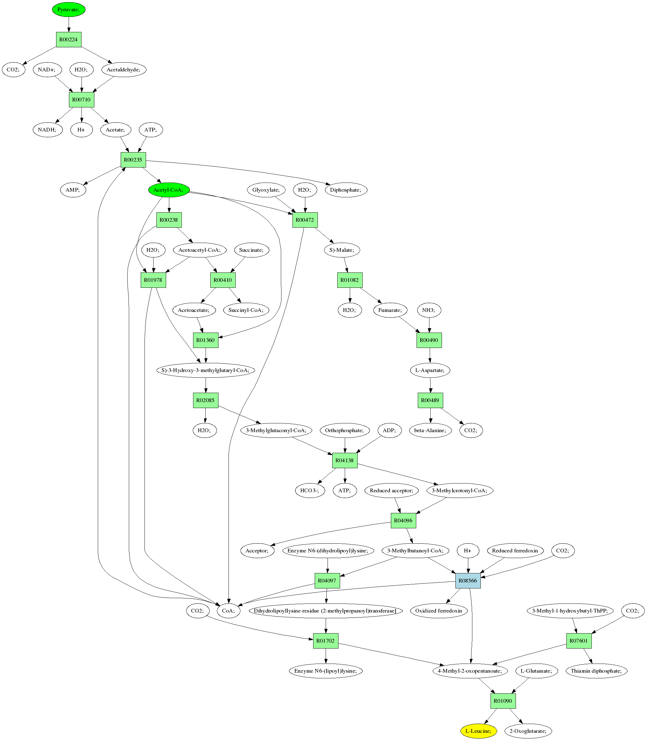 | RP01666 | R08566 | 41 | TRIRE0081576 | O58413|VORA_PYRHO | 0.011 | 1.2.7.7 | CoA; + 4-Methyl-2-oxopentanoate; + Oxidized ferredoxin <=> 3-Methylbutanoyl-CoA; + CO2; + H+ + Reduced ferredoxin |