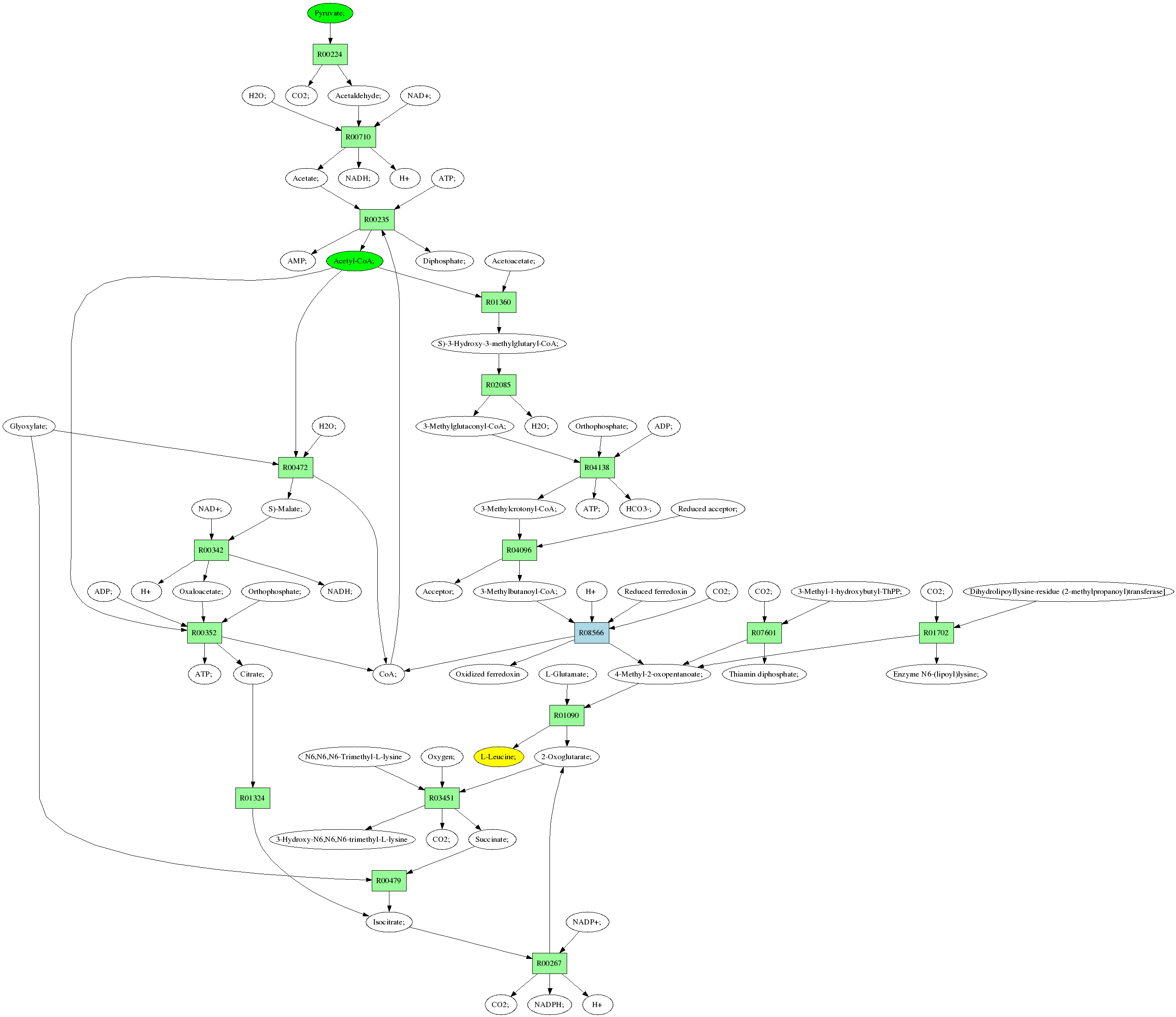 | RP01666 | R08566 | 41 | TRIRE0081576 | O58413|VORA_PYRHO | 0.011 | 1.2.7.7 | CoA; + 4-Methyl-2-oxopentanoate; + Oxidized ferredoxin <=> 3-Methylbutanoyl-CoA; + CO2; + H+ + Reduced ferredoxin |