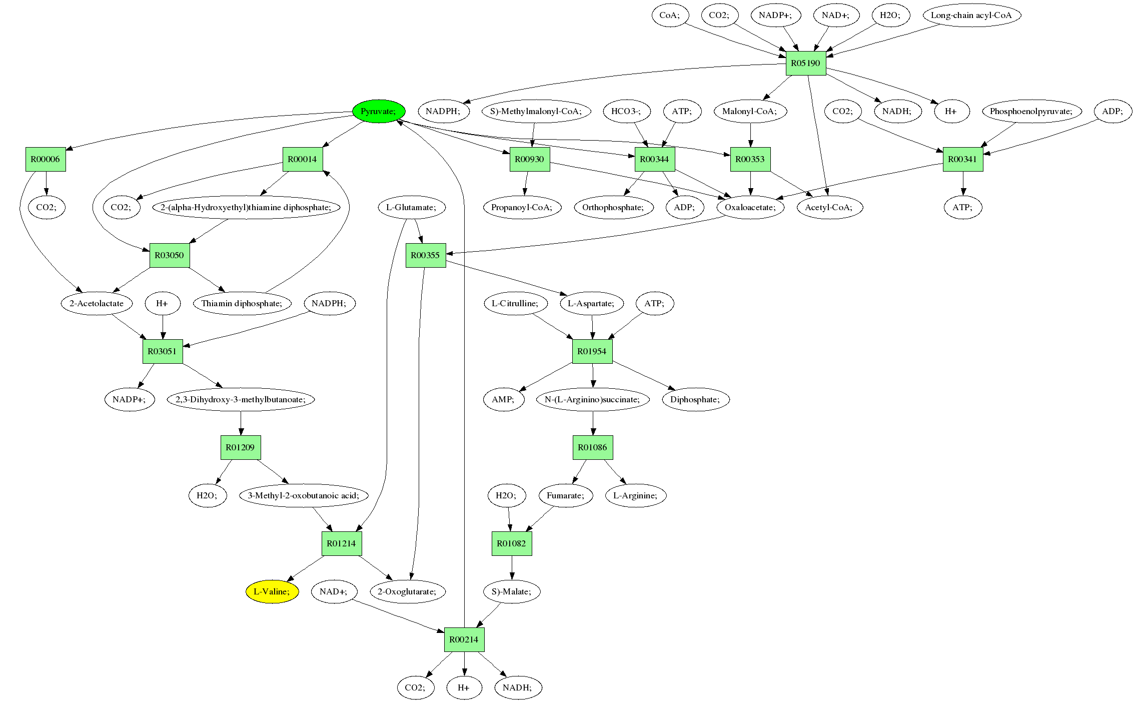 | RP00097 | R01214 | 480 | TRIRE0045459 | P47176|BCA2_YEAST | e-135 | 2.6.1.42 | 2-Oxoglutarate; + L-Valine; <=> L-Glutamate; + 3-Methyl-2-oxobutanoic acid; |