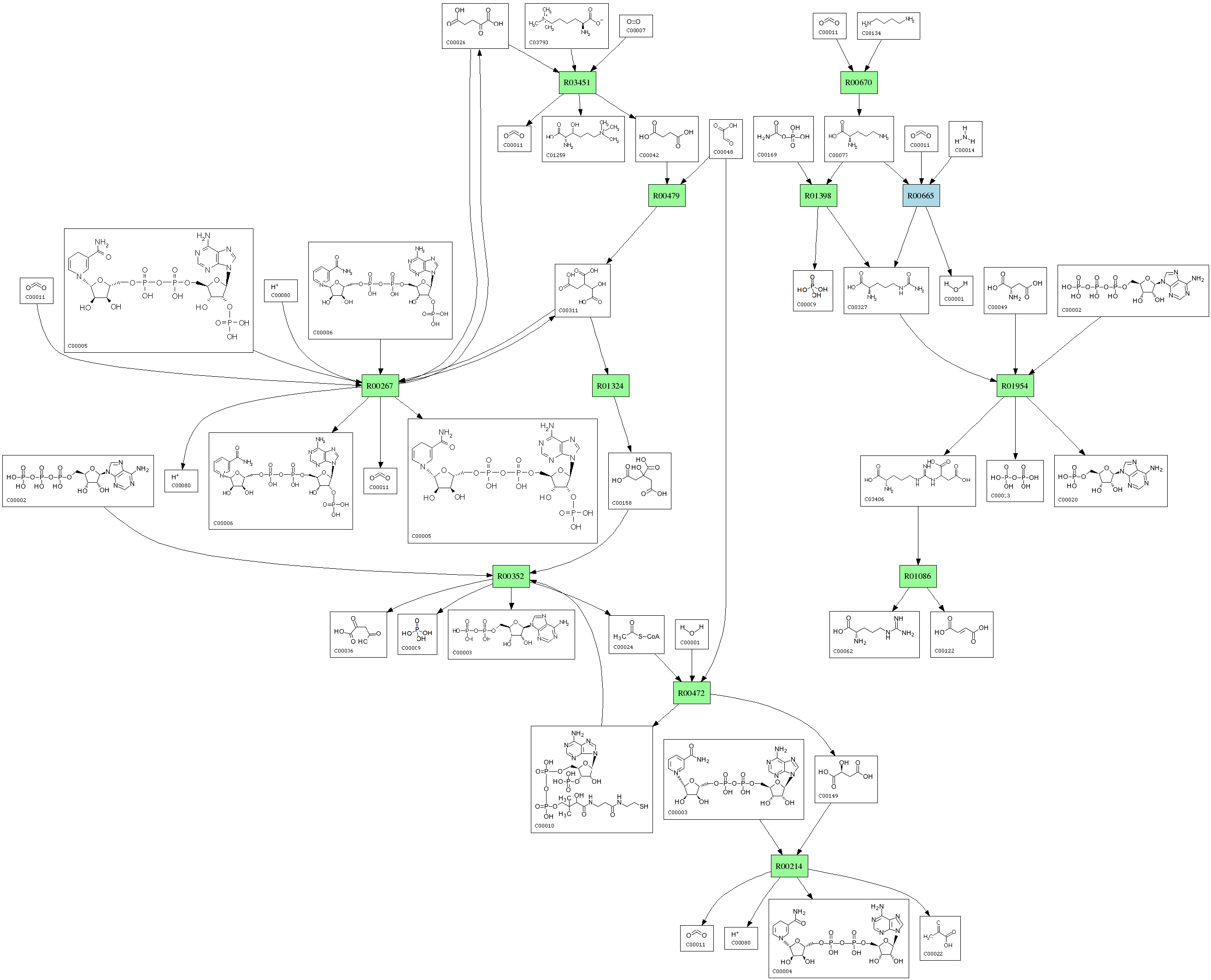 | RP00576 | R01398 | 453 | TRIRE0073937 | P11803|OTC_EMENI | e-127 | 2.1.3.3 | Carbamoyl phosphate + L-Ornithine; <=> L-Citrulline; + Orthophosphate; |