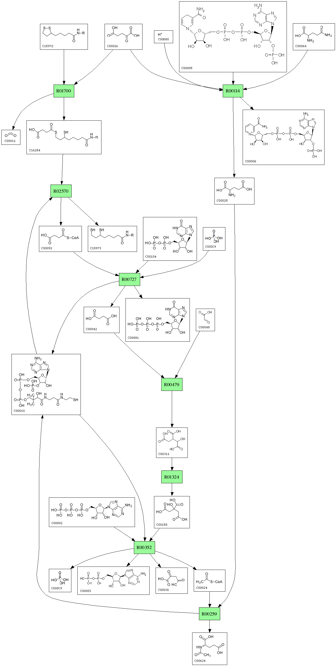 | RP10932 | R02570 | 344 | TRIRE0003653 | P19262|ODO2_YEAST | 1e-94 | 2.3.1.61 | Succinyl-CoA; + Enzyme N6-(dihydrolipoyl)lysine; <=> CoA; + Dihydrolipoyllysine-residue succinyltransferase] |
