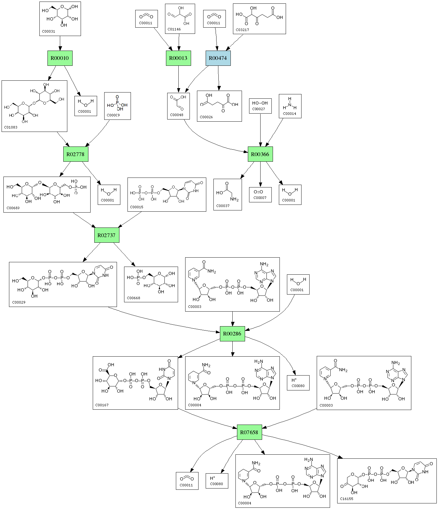 | RP04543 | R00286 | 416 | TRIRE0123705 | Q96558|UGDH_SOYBN | e-116 | 1.1.1.22 | NAD+; + UDP-glucose; + H2O; <=> UDP-glucuronate; + NADH; + H |