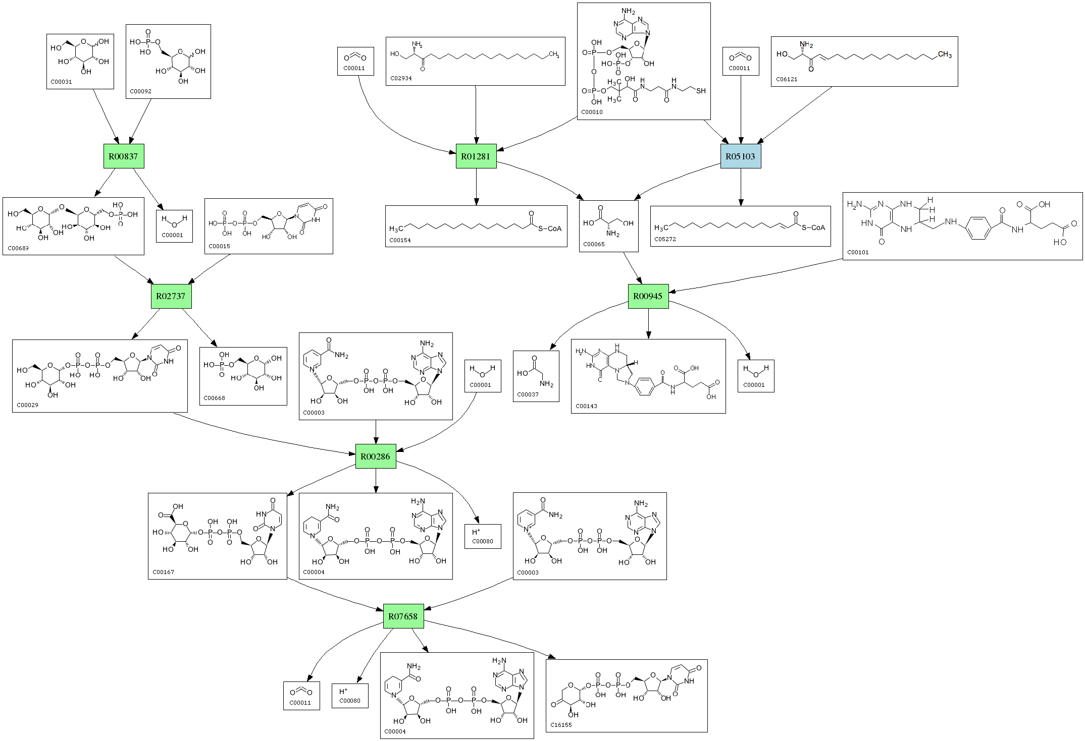 | RP04699 | R05103 | 0 | CoA; + CO2; + 3-Ketosphingosine <=> trans-Hexadec-2-enoyl-CoA; + L-Serine; | ||||