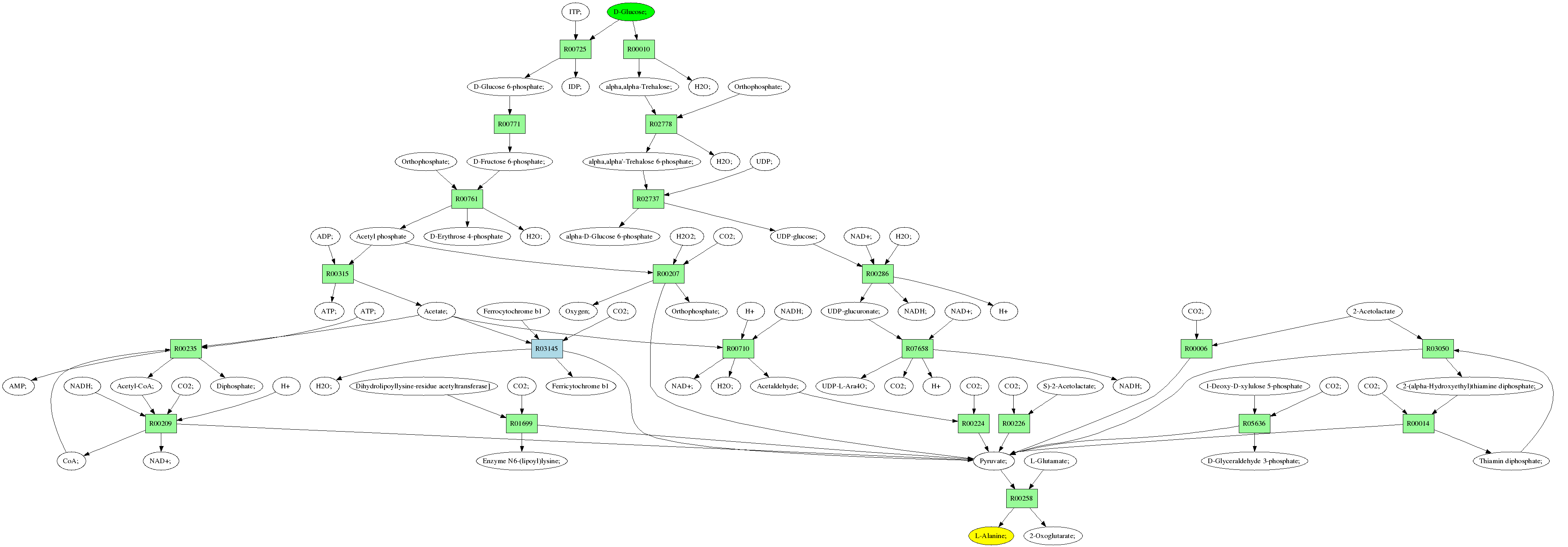 | RP00021 | R00258 | 477 | TRIRE0109187 | P52893|ALAM_YEAST | e-134 | 2.6.1.2 | L-Alanine; + 2-Oxoglutarate; <=> L-Glutamate; + Pyruvate; |