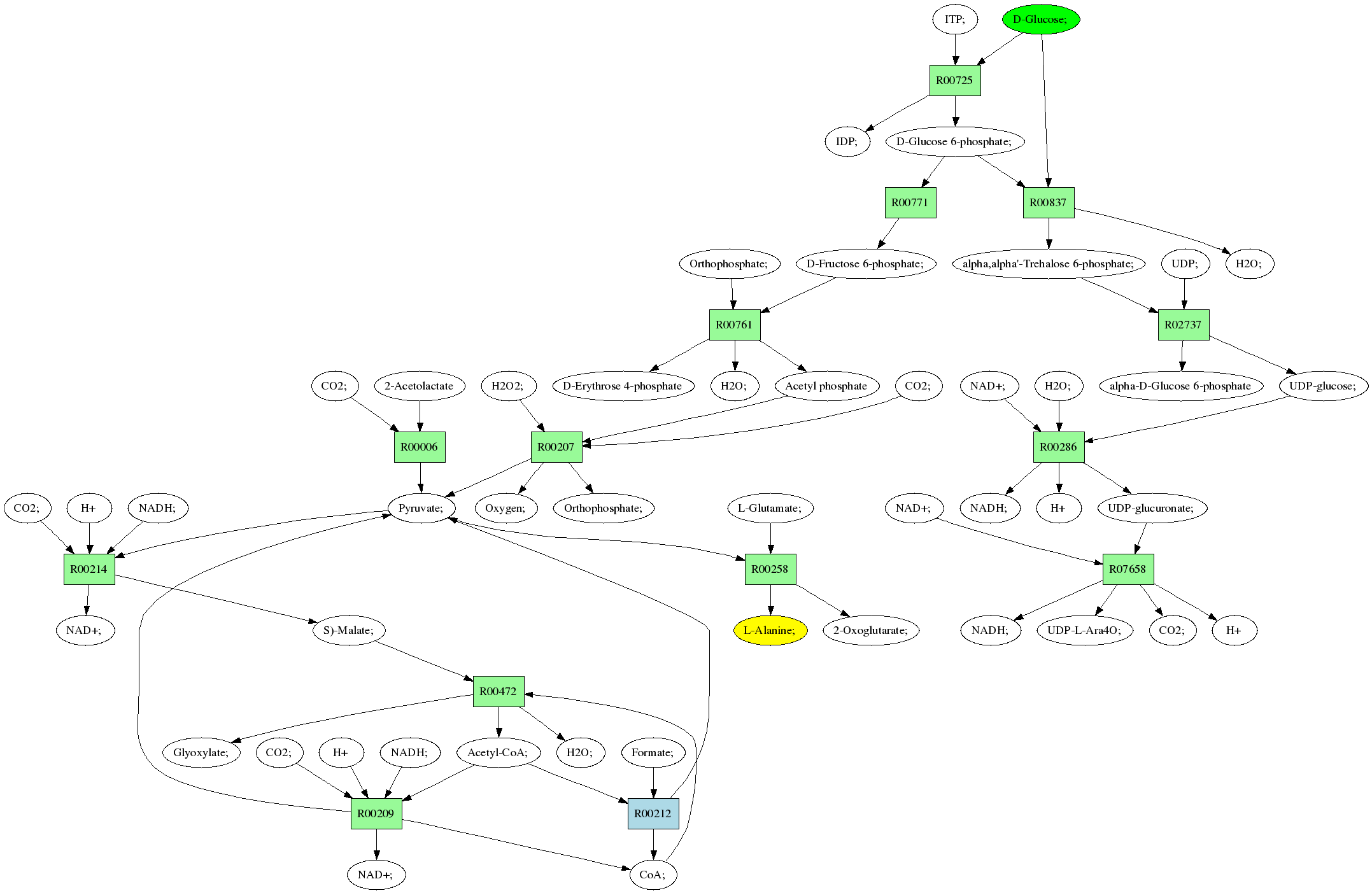 | RP00021 | R00258 | 477 | TRIRE0109187 | P52893|ALAM_YEAST | e-134 | 2.6.1.2 | L-Alanine; + 2-Oxoglutarate; <=> L-Glutamate; + Pyruvate; |