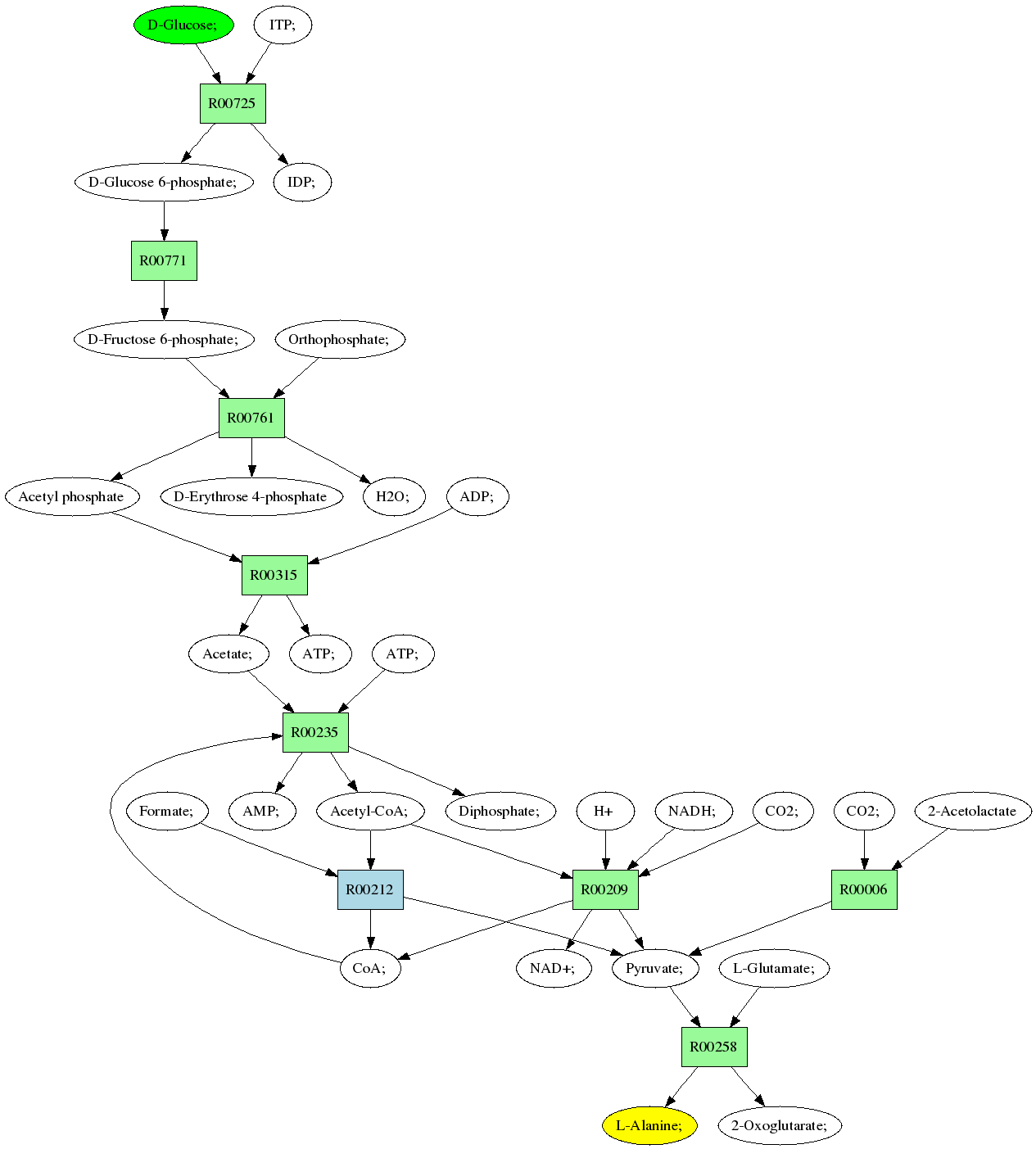 | RP00021 | R00258 | 477 | TRIRE0109187 | P52893|ALAM_YEAST | e-134 | 2.6.1.2 | L-Alanine; + 2-Oxoglutarate; <=> L-Glutamate; + Pyruvate; |