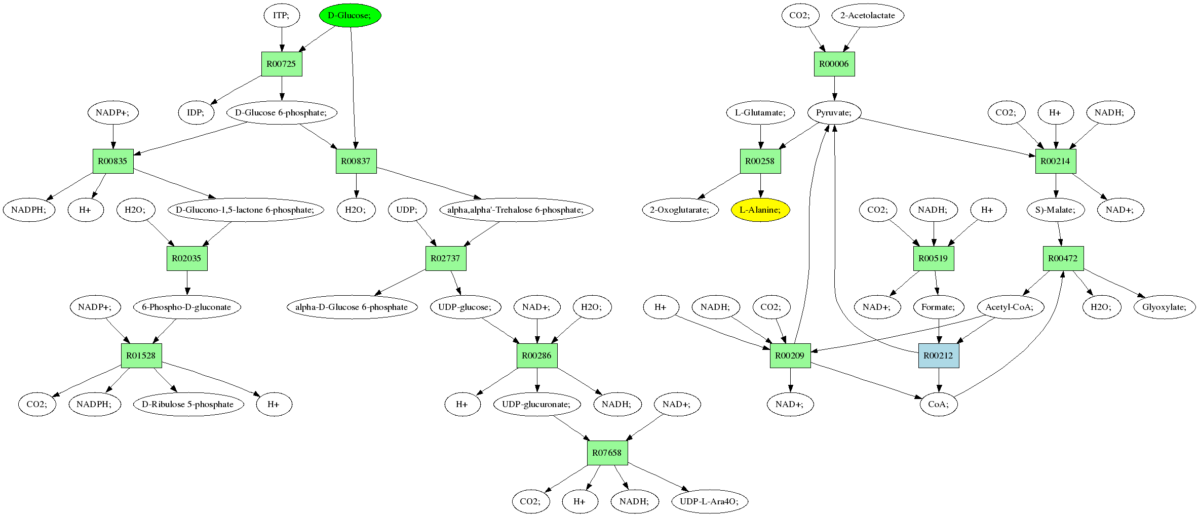 | RP00021 | R00258 | 477 | TRIRE0109187 | P52893|ALAM_YEAST | e-134 | 2.6.1.2 | L-Alanine; + 2-Oxoglutarate; <=> L-Glutamate; + Pyruvate; |