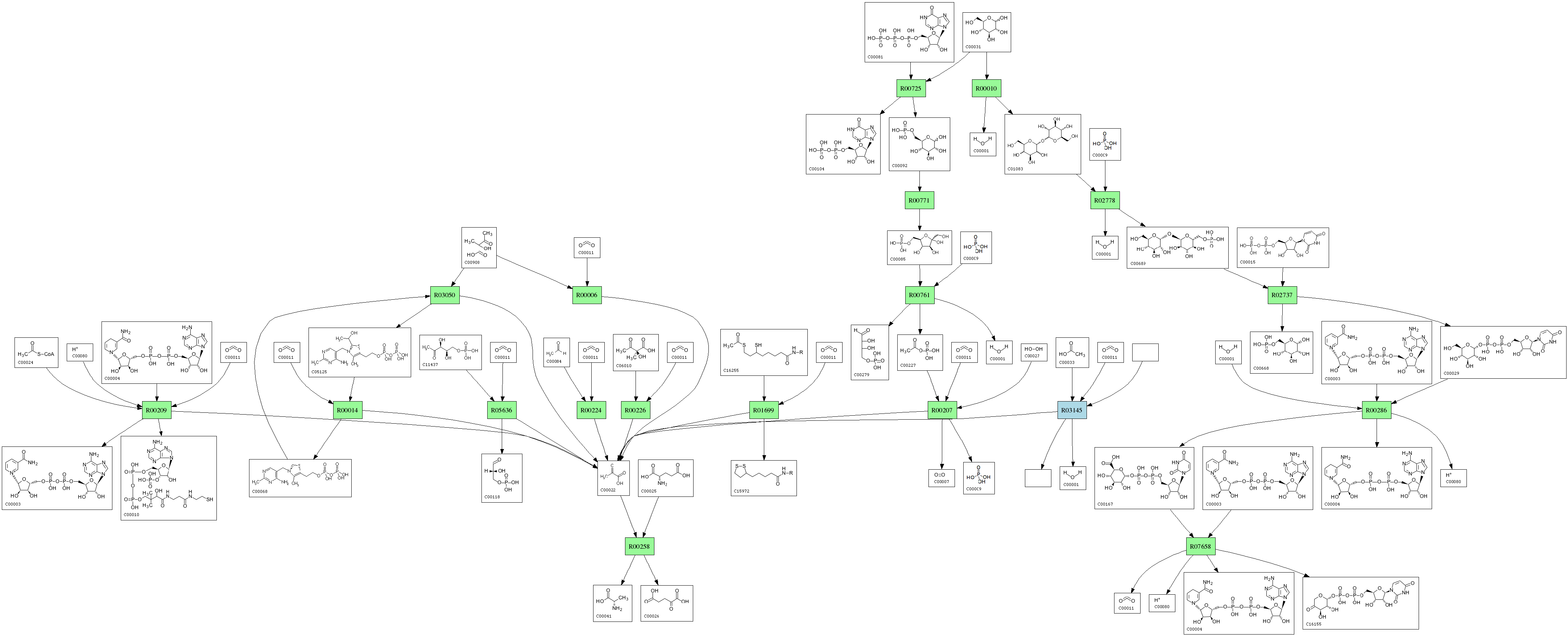| RP00285 | R00209 | 576 | TRIRE0077373 | O00087|DLDH_SCHPO | e-164 | 1.8.1.4 | CoA; + NAD+; + Pyruvate; <=> Acetyl-CoA; + H+ + NADH; + CO2; |