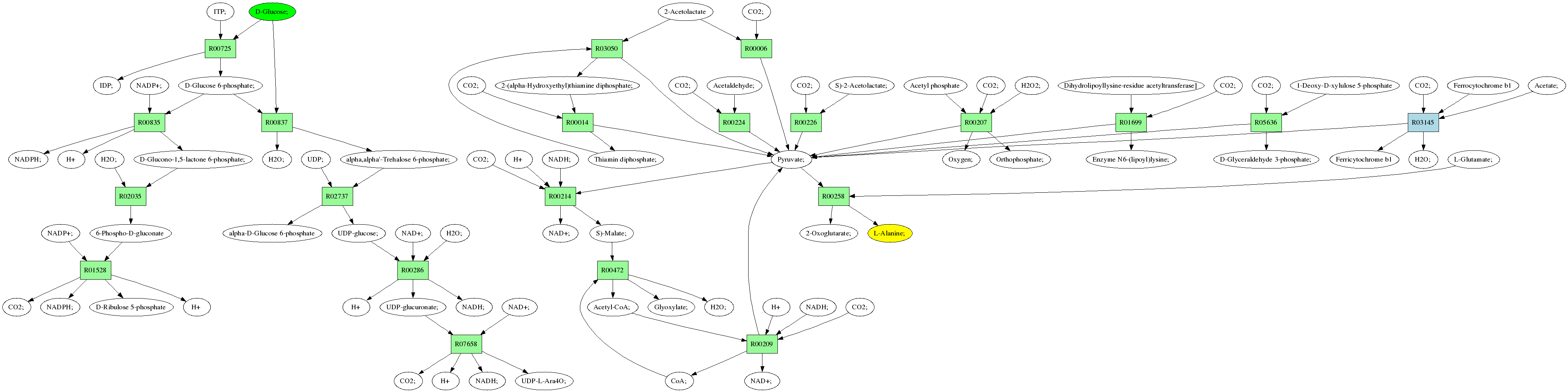 | RP00021 | R00258 | 477 | TRIRE0109187 | P52893|ALAM_YEAST | e-134 | 2.6.1.2 | L-Alanine; + 2-Oxoglutarate; <=> L-Glutamate; + Pyruvate; |