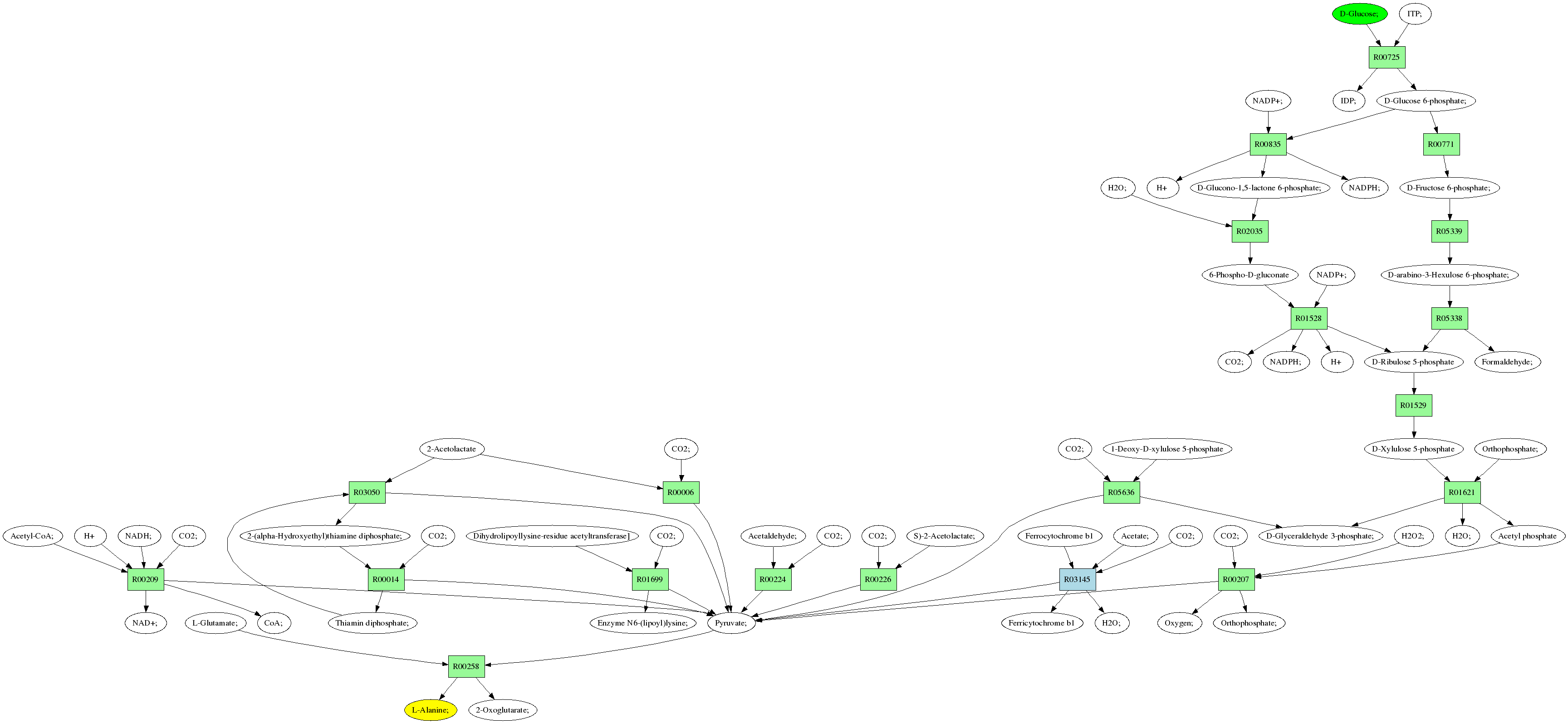| RP00021 | R00258 | 477 | TRIRE0109187 | P52893|ALAM_YEAST | e-134 | 2.6.1.2 | L-Alanine; + 2-Oxoglutarate; <=> L-Glutamate; + Pyruvate; |