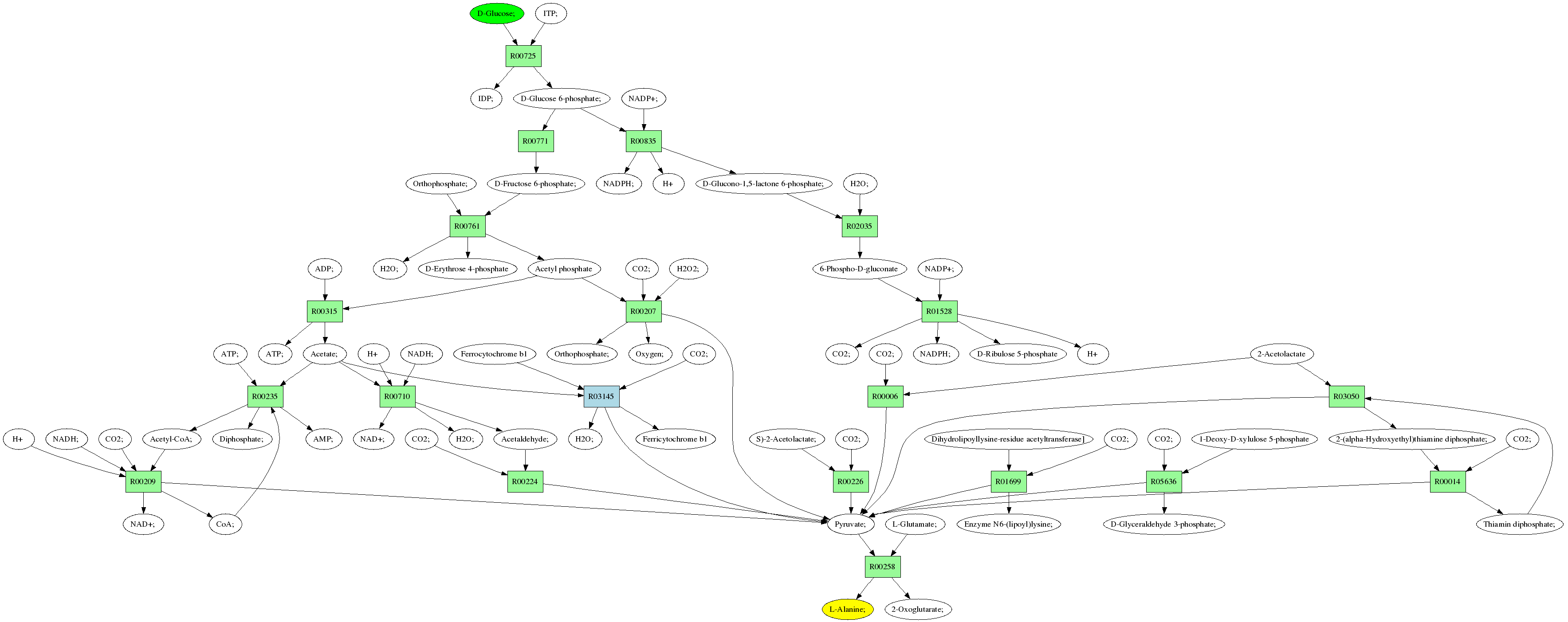 | RP00021 | R00258 | 477 | TRIRE0109187 | P52893|ALAM_YEAST | e-134 | 2.6.1.2 | L-Alanine; + 2-Oxoglutarate; <=> L-Glutamate; + Pyruvate; |