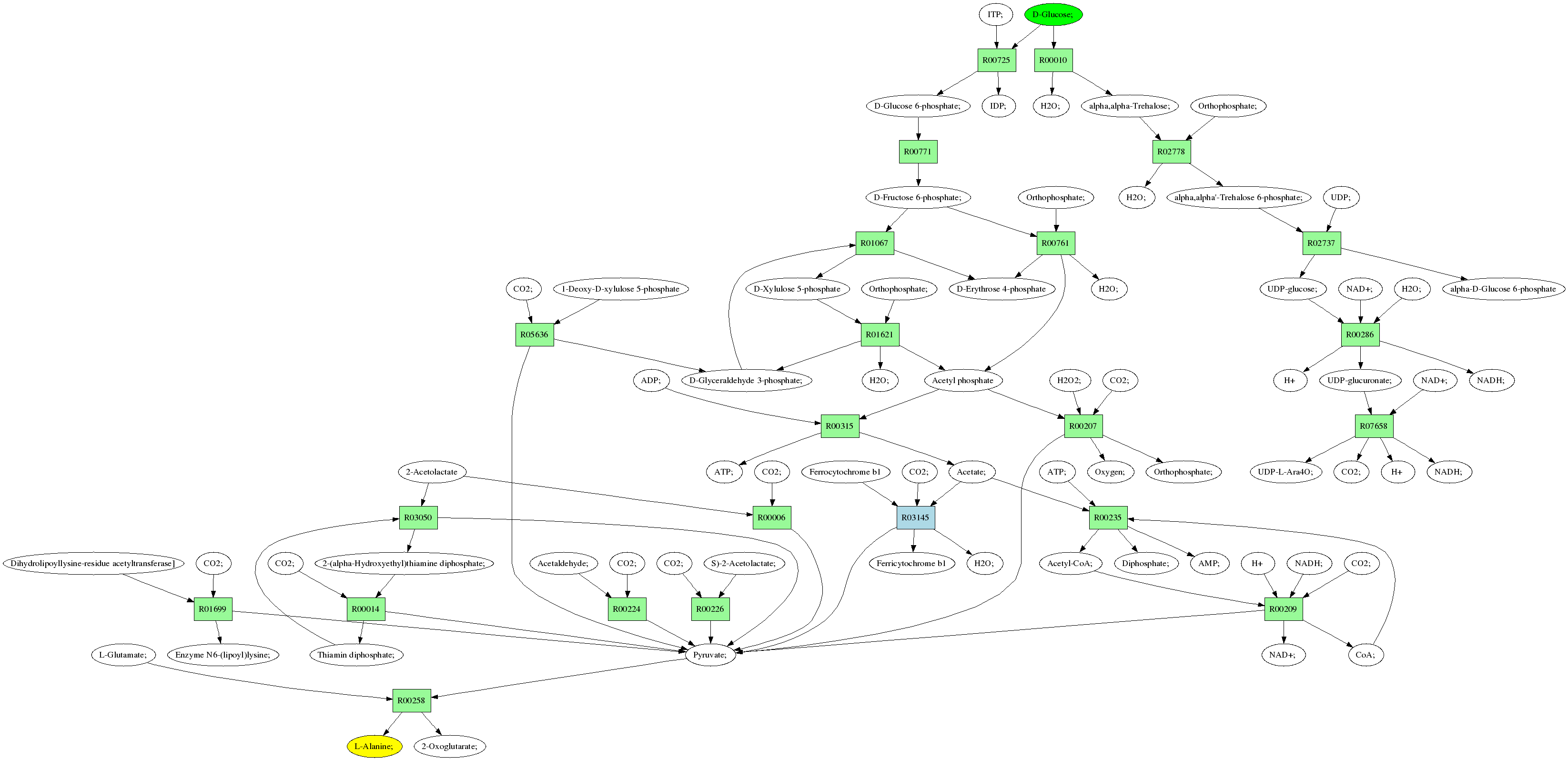 | RP00021 | R00258 | 477 | TRIRE0109187 | P52893|ALAM_YEAST | e-134 | 2.6.1.2 | L-Alanine; + 2-Oxoglutarate; <=> L-Glutamate; + Pyruvate; |