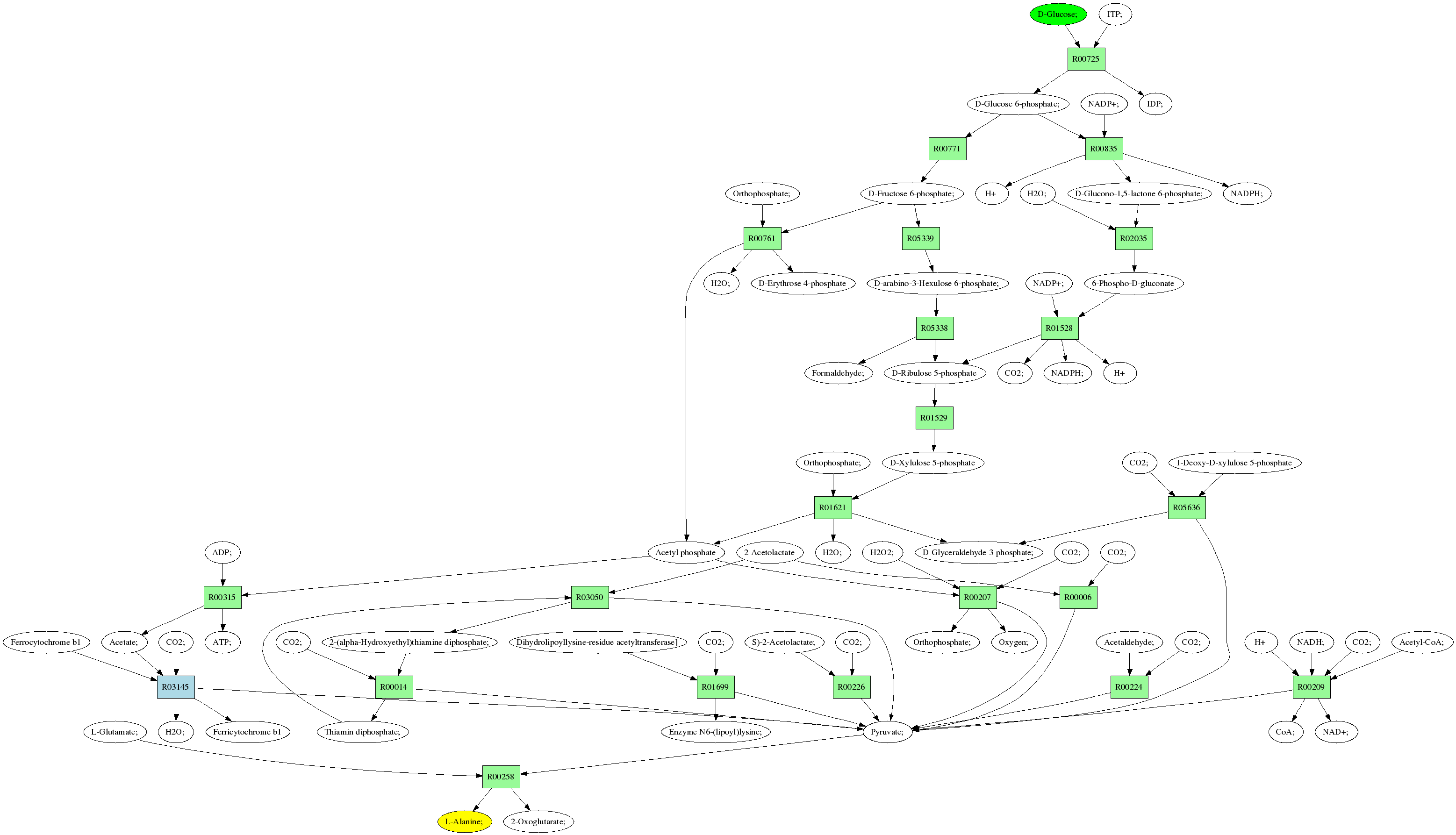 | RP00021 | R00258 | 477 | TRIRE0109187 | P52893|ALAM_YEAST | e-134 | 2.6.1.2 | L-Alanine; + 2-Oxoglutarate; <=> L-Glutamate; + Pyruvate; |
