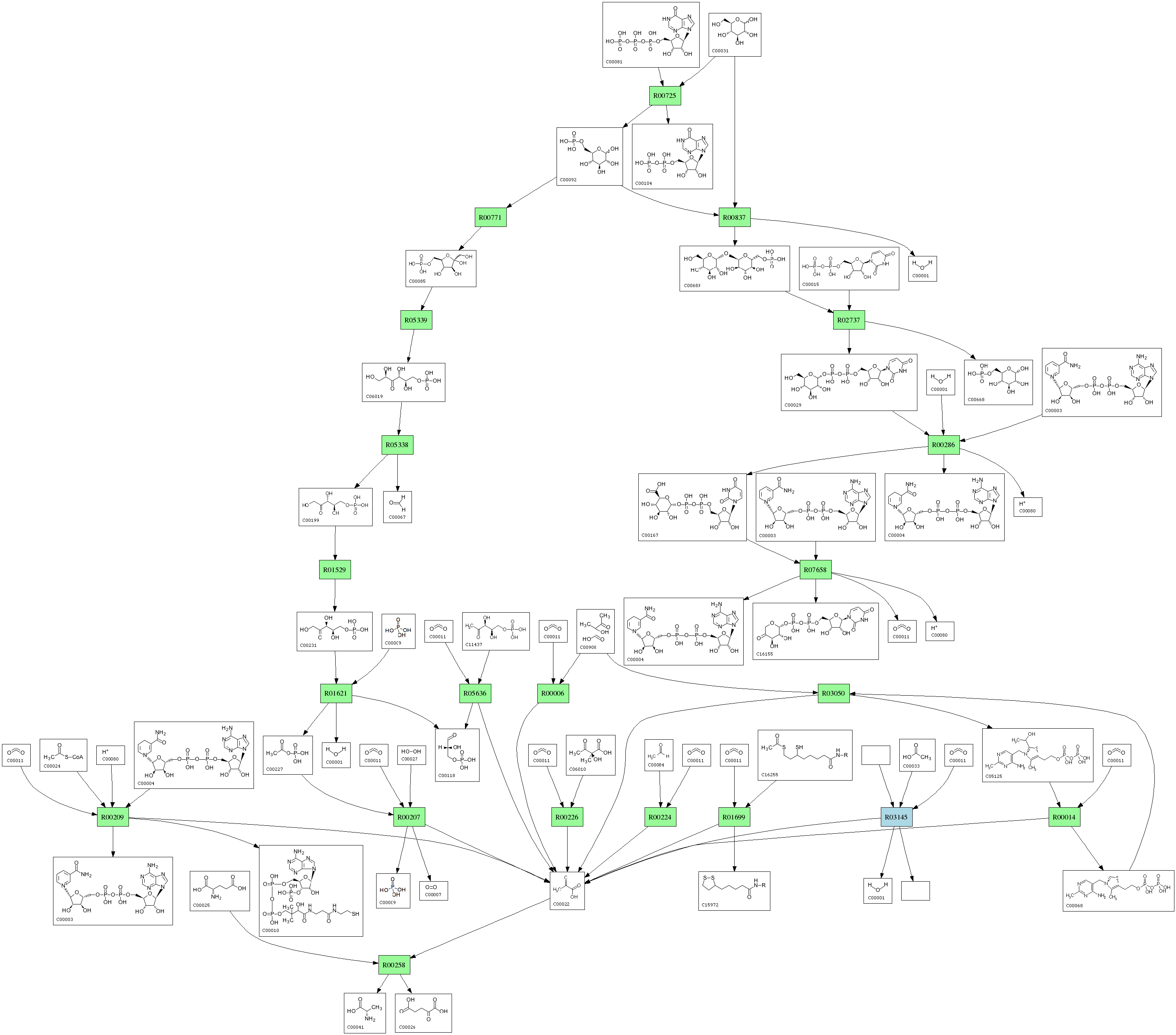 | RP00285 | R00209 | 576 | TRIRE0077373 | O00087|DLDH_SCHPO | e-164 | 1.8.1.4 | CoA; + NAD+; + Pyruvate; <=> Acetyl-CoA; + H+ + NADH; + CO2; |
