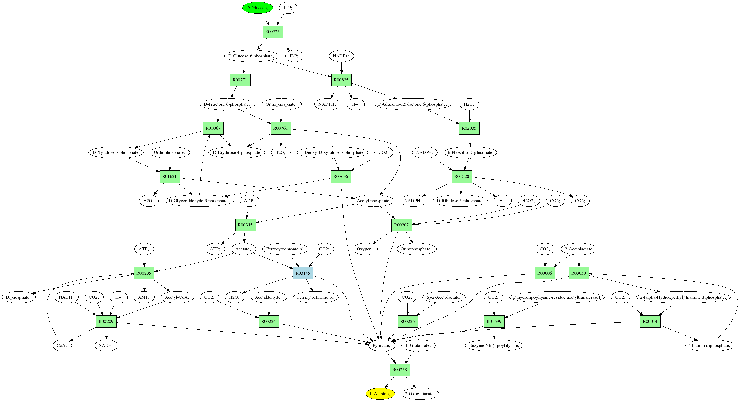 | RP02797 | R03145 | 0 | Ferricytochrome b1 + H2O; + Pyruvate; <=> CO2; + Ferrocytochrome b1 + Acetate; | ||||