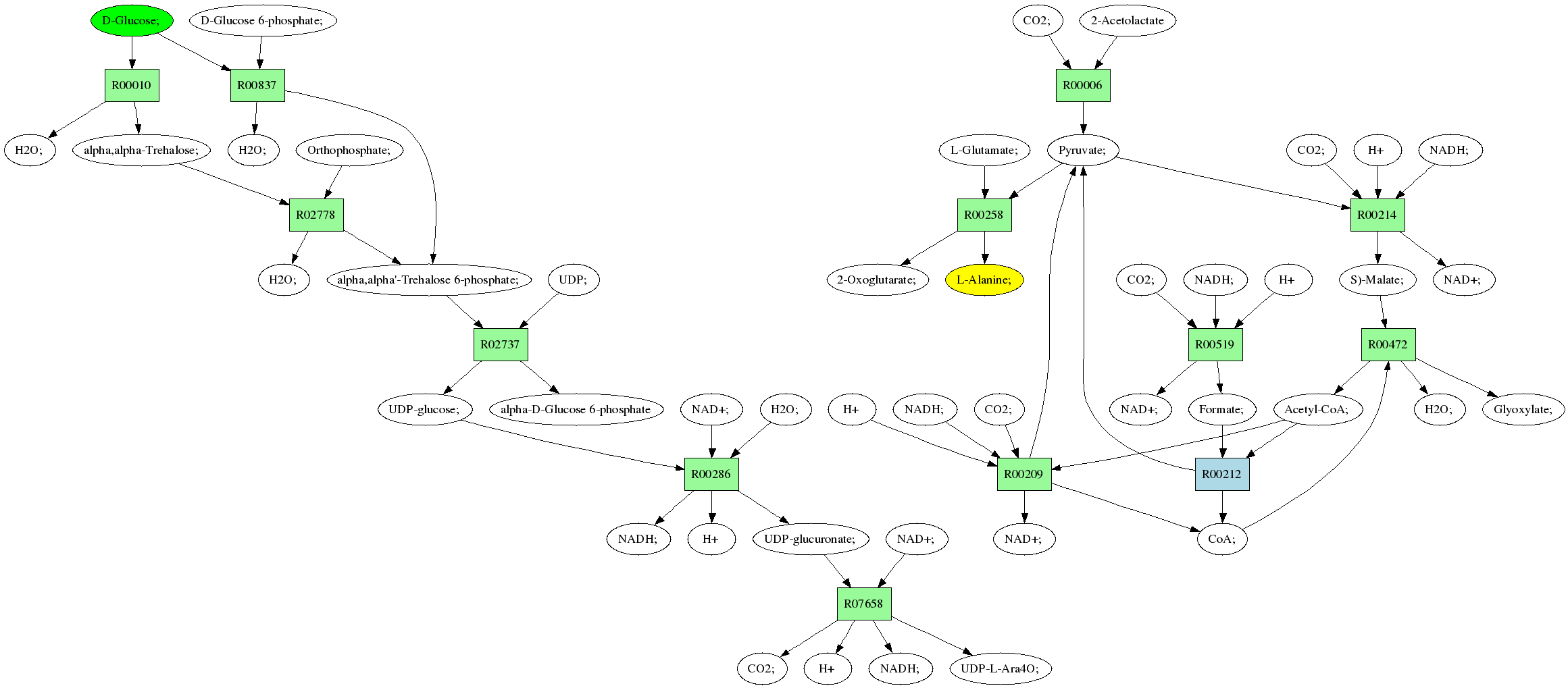 | RP00021 | R00258 | 477 | TRIRE0109187 | P52893|ALAM_YEAST | e-134 | 2.6.1.2 | L-Alanine; + 2-Oxoglutarate; <=> L-Glutamate; + Pyruvate; |