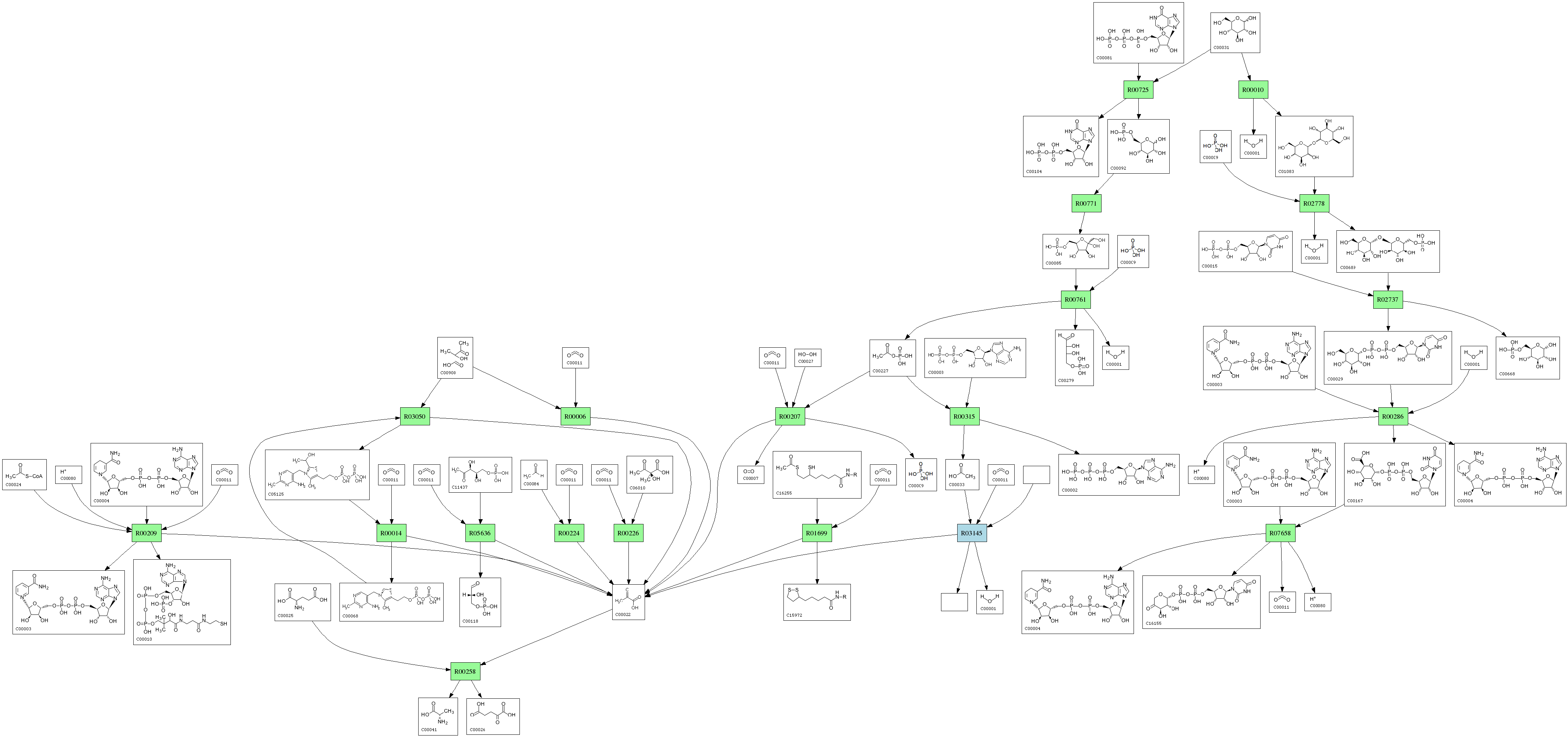 | RP00285 | R00209 | 576 | TRIRE0077373 | O00087|DLDH_SCHPO | e-164 | 1.8.1.4 | CoA; + NAD+; + Pyruvate; <=> Acetyl-CoA; + H+ + NADH; + CO2; |