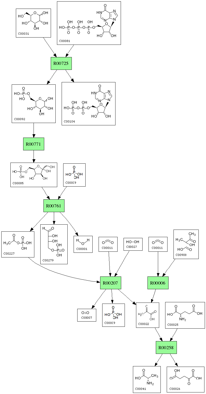 | RP00021 | R00258 | 477 | TRIRE0109187 | P52893|ALAM_YEAST | e-134 | 2.6.1.2 | L-Alanine; + 2-Oxoglutarate; <=> L-Glutamate; + Pyruvate; |