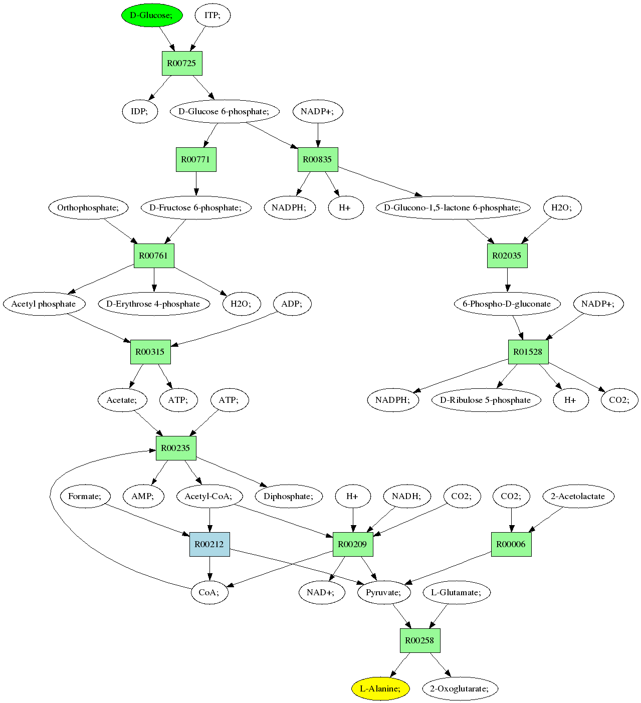 | RP00021 | R00258 | 477 | TRIRE0109187 | P52893|ALAM_YEAST | e-134 | 2.6.1.2 | L-Alanine; + 2-Oxoglutarate; <=> L-Glutamate; + Pyruvate; |