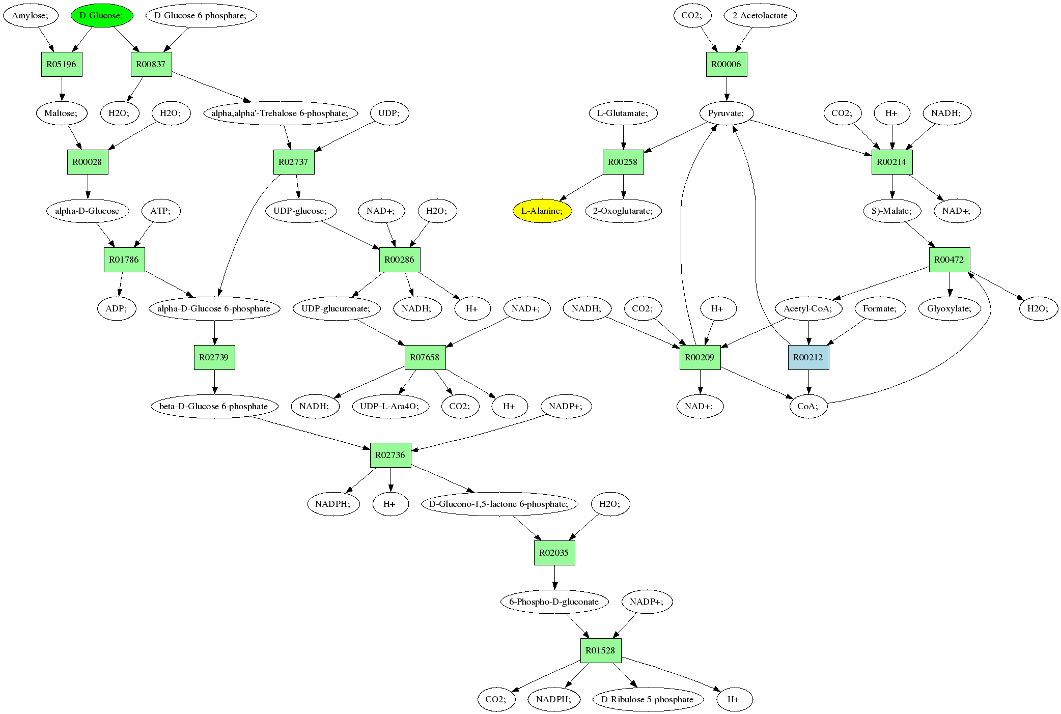 | RP00021 | R00258 | 477 | TRIRE0109187 | P52893|ALAM_YEAST | e-134 | 2.6.1.2 | L-Alanine; + 2-Oxoglutarate; <=> L-Glutamate; + Pyruvate; |