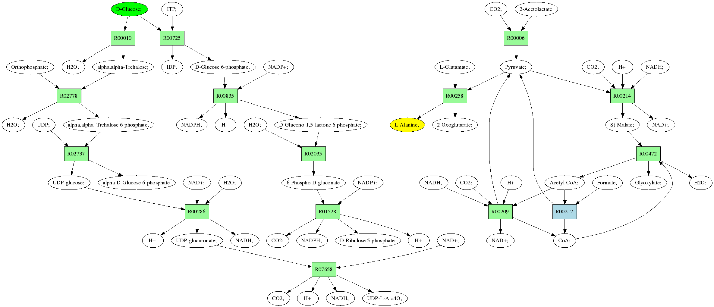 | RP00021 | R00258 | 477 | TRIRE0109187 | P52893|ALAM_YEAST | e-134 | 2.6.1.2 | L-Alanine; + 2-Oxoglutarate; <=> L-Glutamate; + Pyruvate; |