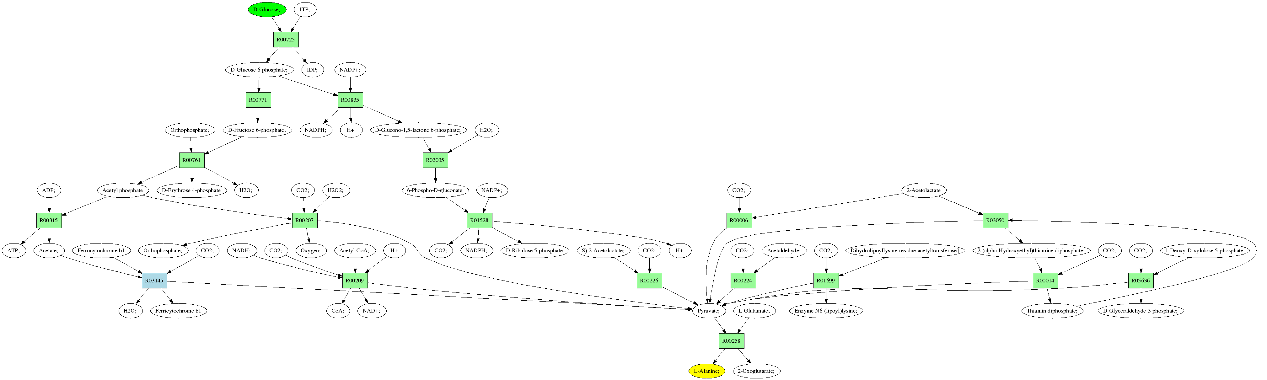 | RP00021 | R00258 | 477 | TRIRE0109187 | P52893|ALAM_YEAST | e-134 | 2.6.1.2 | L-Alanine; + 2-Oxoglutarate; <=> L-Glutamate; + Pyruvate; |