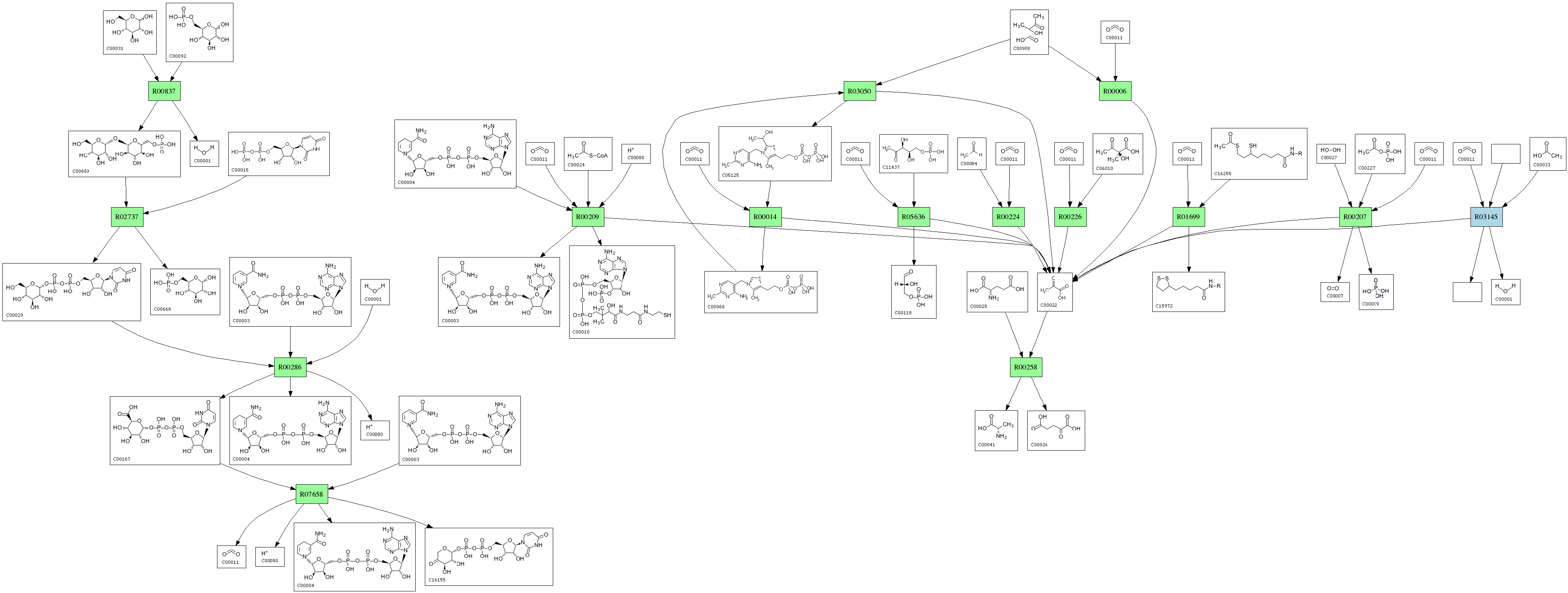 | RP00285 | R00209 | 576 | TRIRE0077373 | O00087|DLDH_SCHPO | e-164 | 1.8.1.4 | CoA; + NAD+; + Pyruvate; <=> Acetyl-CoA; + H+ + NADH; + CO2; |