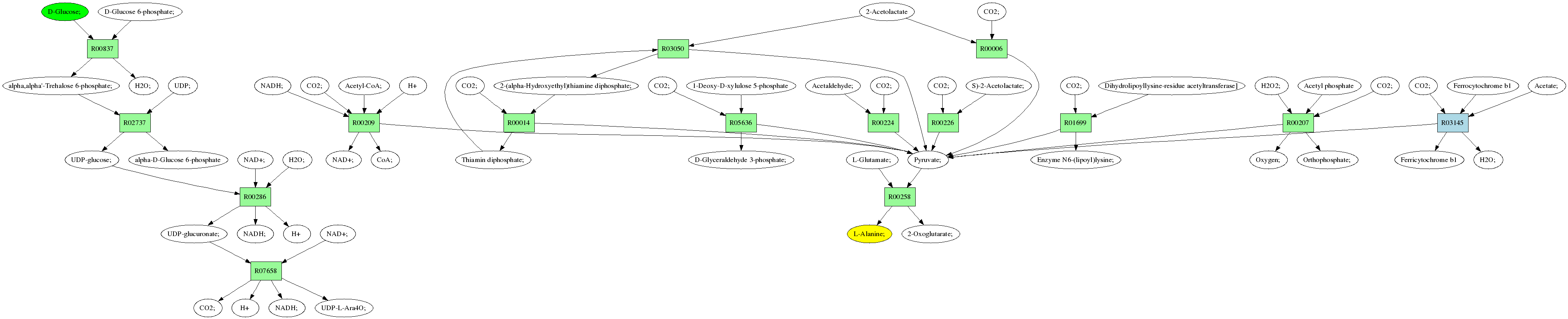 | RP00021 | R00258 | 477 | TRIRE0109187 | P52893|ALAM_YEAST | e-134 | 2.6.1.2 | L-Alanine; + 2-Oxoglutarate; <=> L-Glutamate; + Pyruvate; |