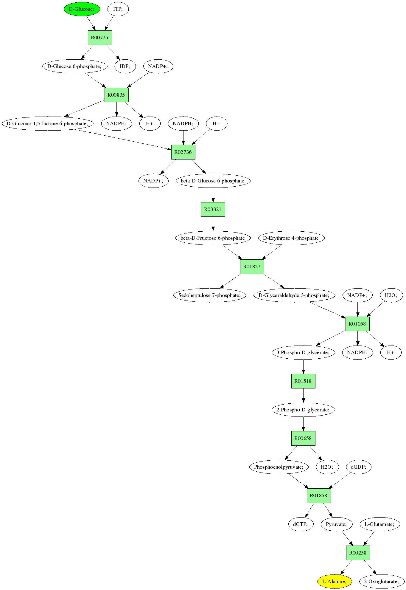 | RP00021 | R00258 | 477 | TRIRE0109187 | P52893|ALAM_YEAST | e-134 | 2.6.1.2 | L-Alanine; + 2-Oxoglutarate; <=> L-Glutamate; + Pyruvate; |