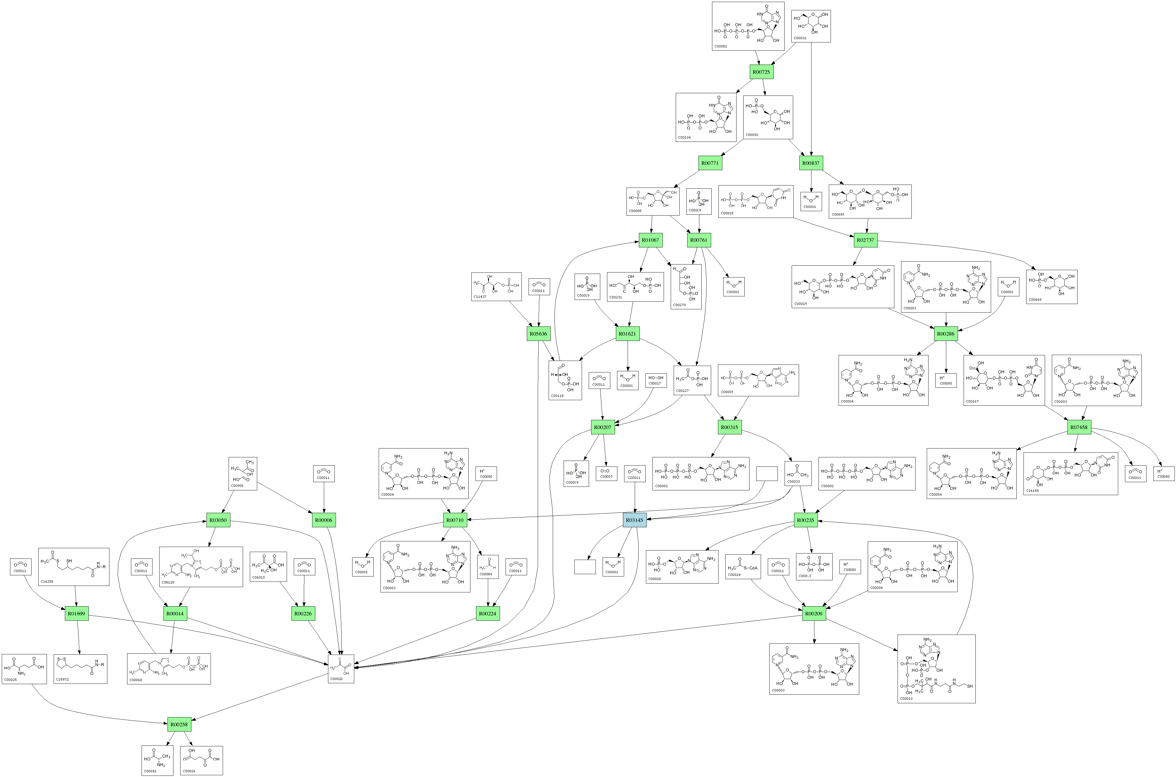 | RP00285 | R00209 | 576 | TRIRE0077373 | O00087|DLDH_SCHPO | e-164 | 1.8.1.4 | CoA; + NAD+; + Pyruvate; <=> Acetyl-CoA; + H+ + NADH; + CO2; |